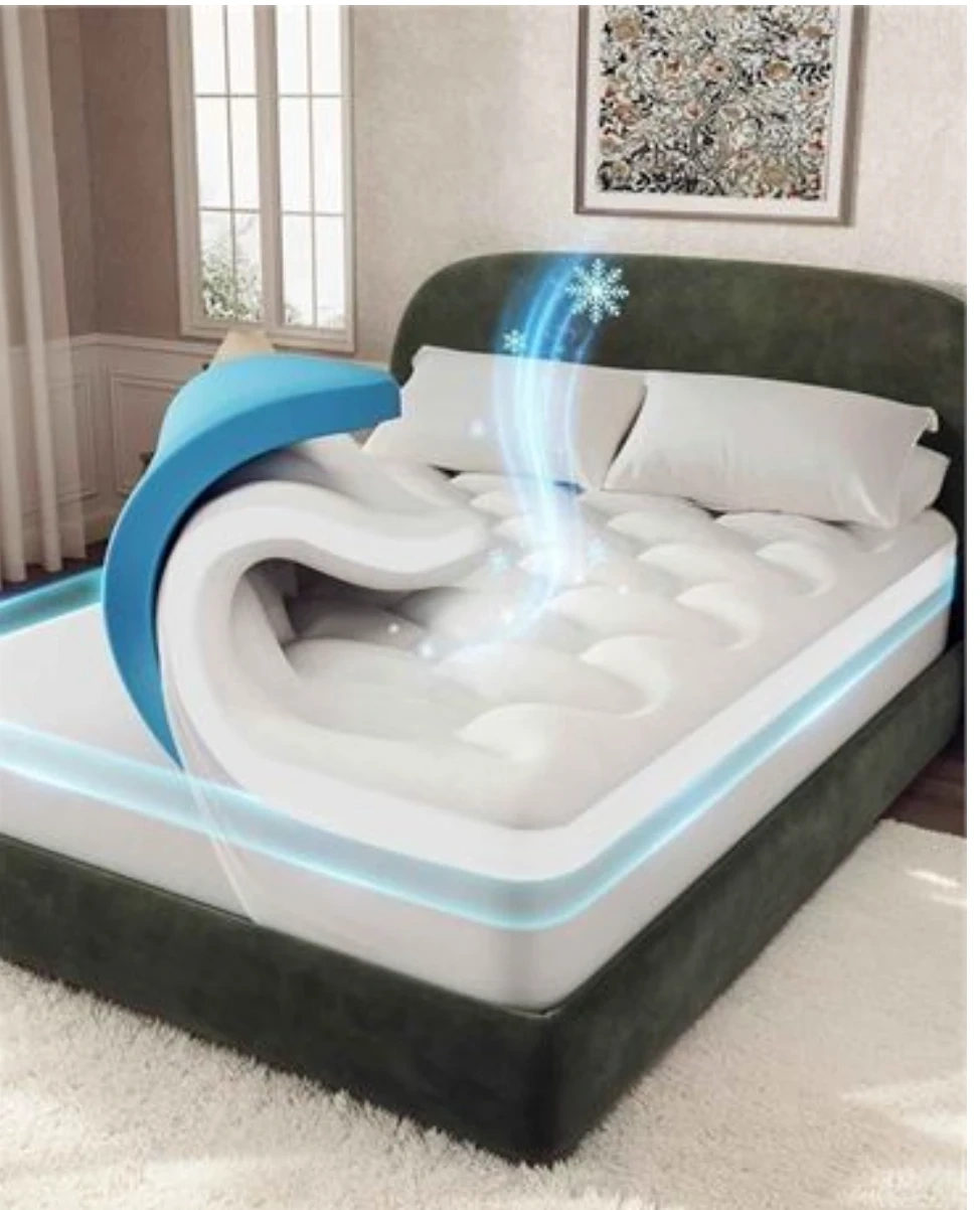 Dual-Layer Cooling Comfort: Combines a 2" cooling gel-infused memory foam base with a 2" breathable cooling fabric pillow top. The result is a plush, airy feel that promotes airflow and minimizes night sweats for deeper, more restful sleep
