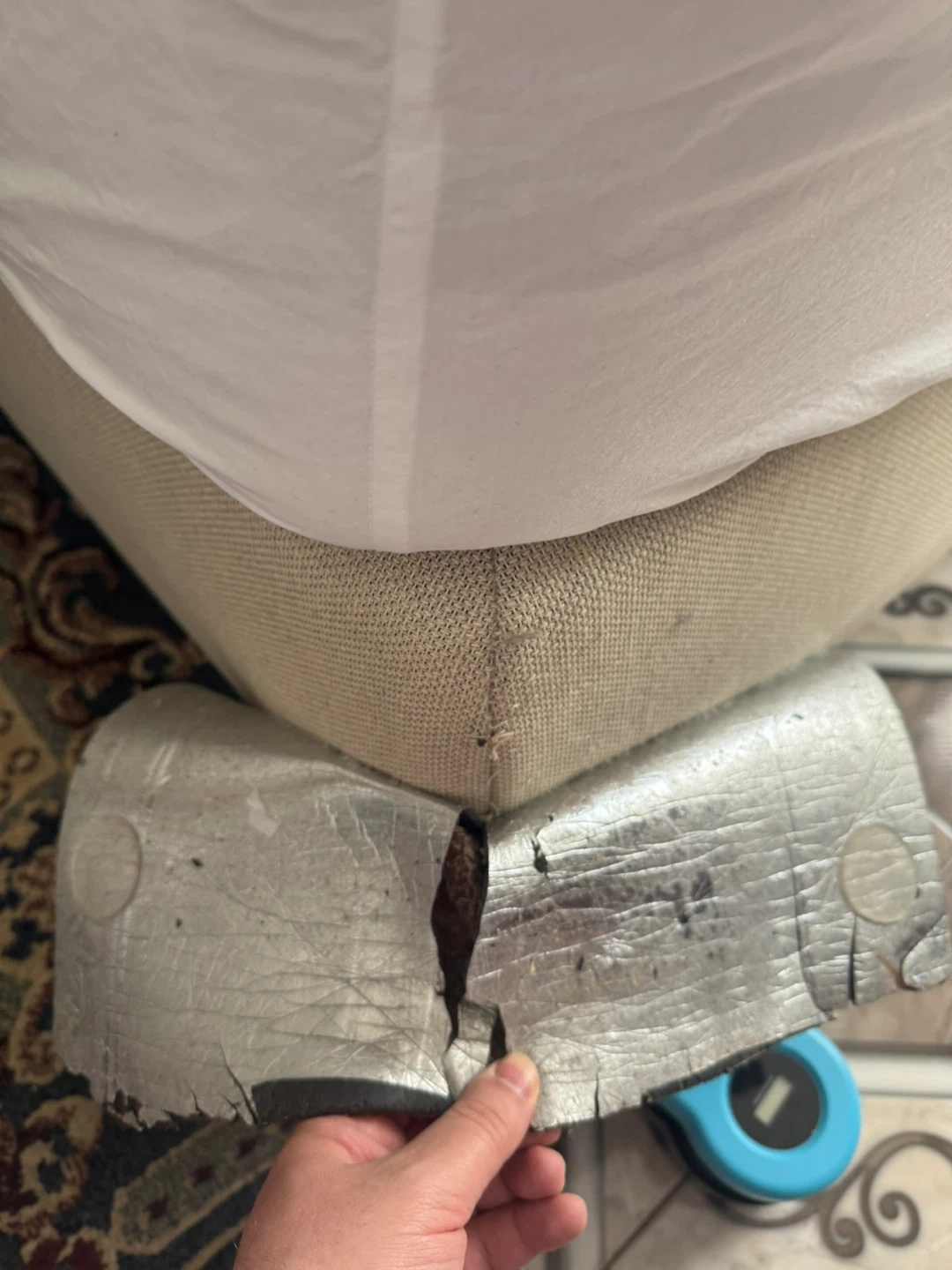 This is a queen size bed frame. It has a beige upholstered base. The frame is sturdy and includes support Queen Size Bed for Sale – Stylish & Comfortable