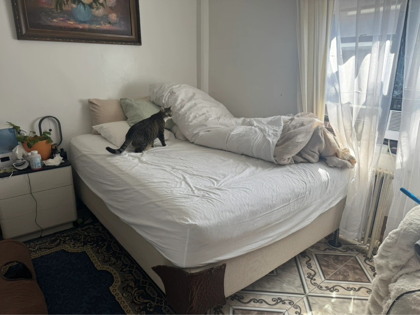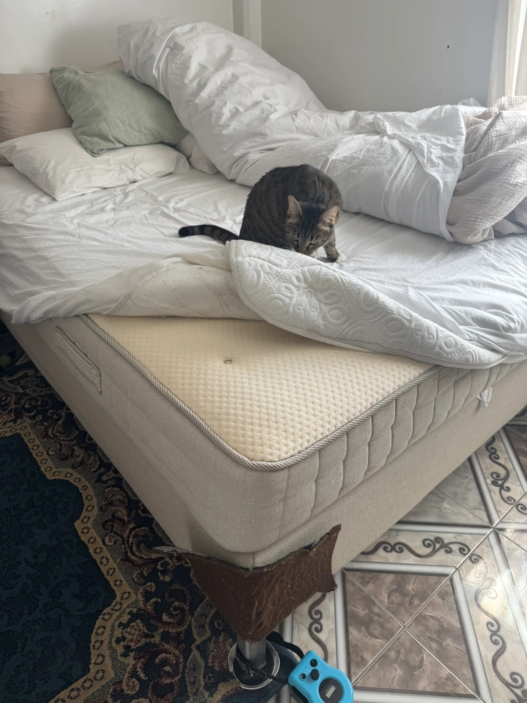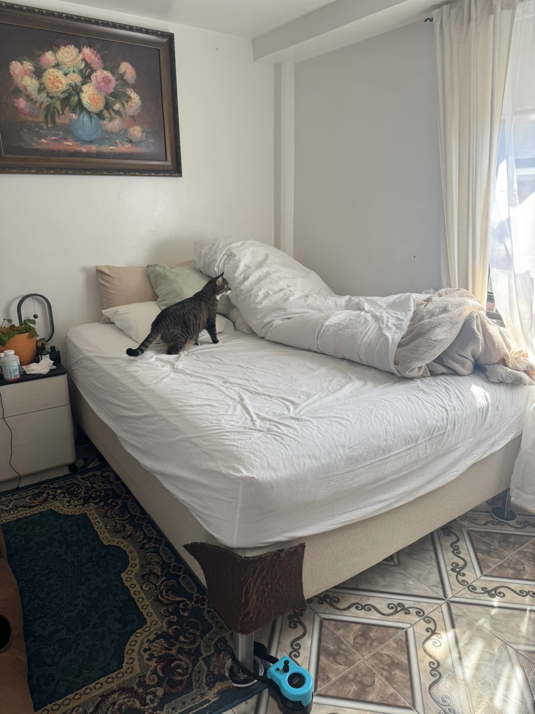 Selling a beautiful, well-maintained queen size bed. Neutral light upholstery fits perfectly with any interior style — modern, minimal, or classic.