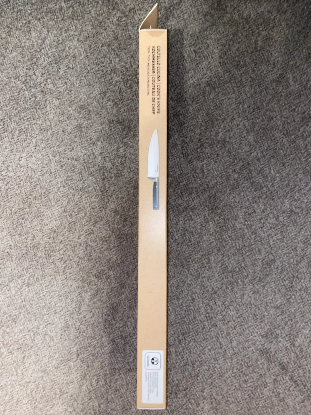 This is a Berndes Re-Generation chef's knife, 19cm or 7.49 inches. It's made from 90% recycled stainless steel. A quality knife for your kitchen prep needs!
