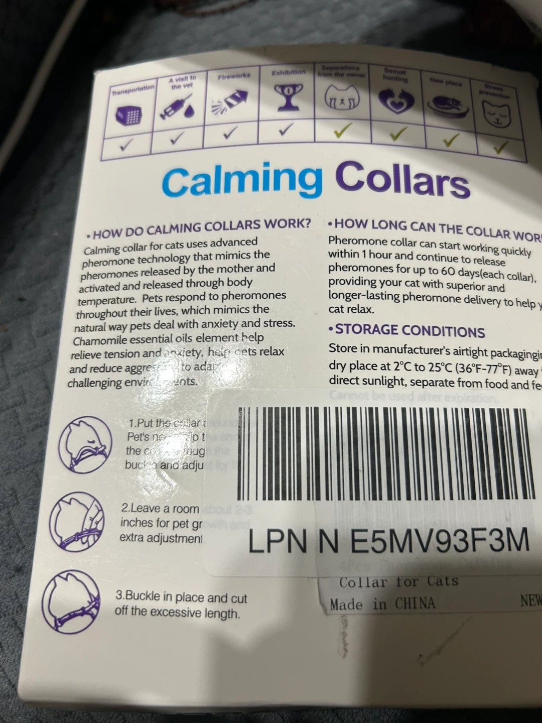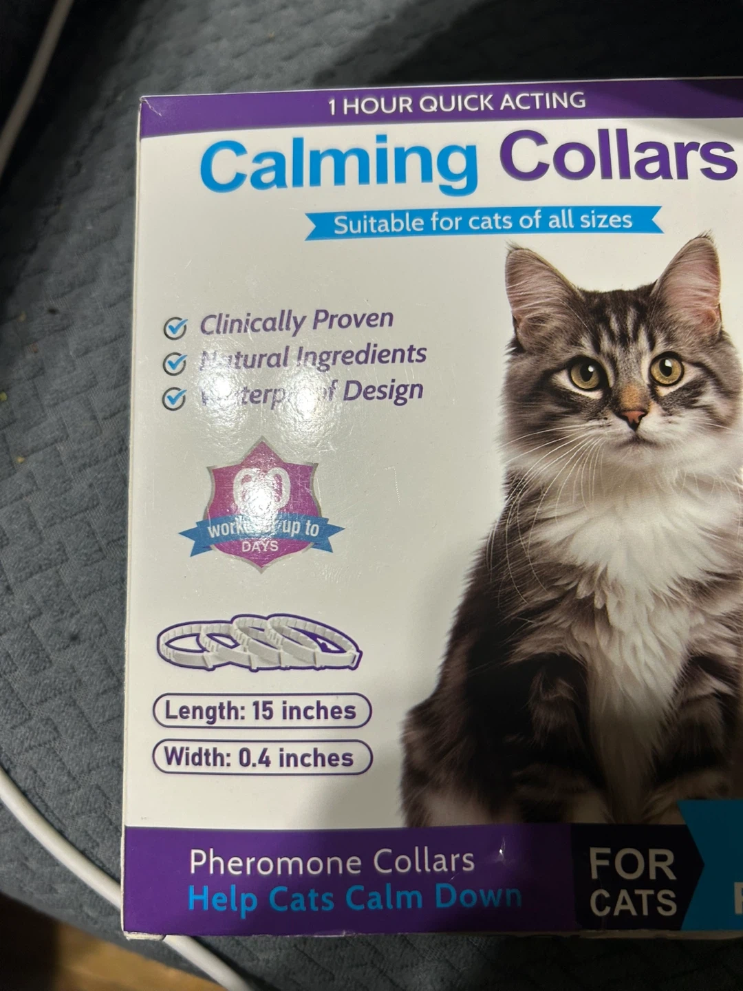Brand new calming collars for cats. These collars are designed to help cats with stress prevention and separation anxiety. Each collar is individually packaged. 15 inches long for cats of all sizes.