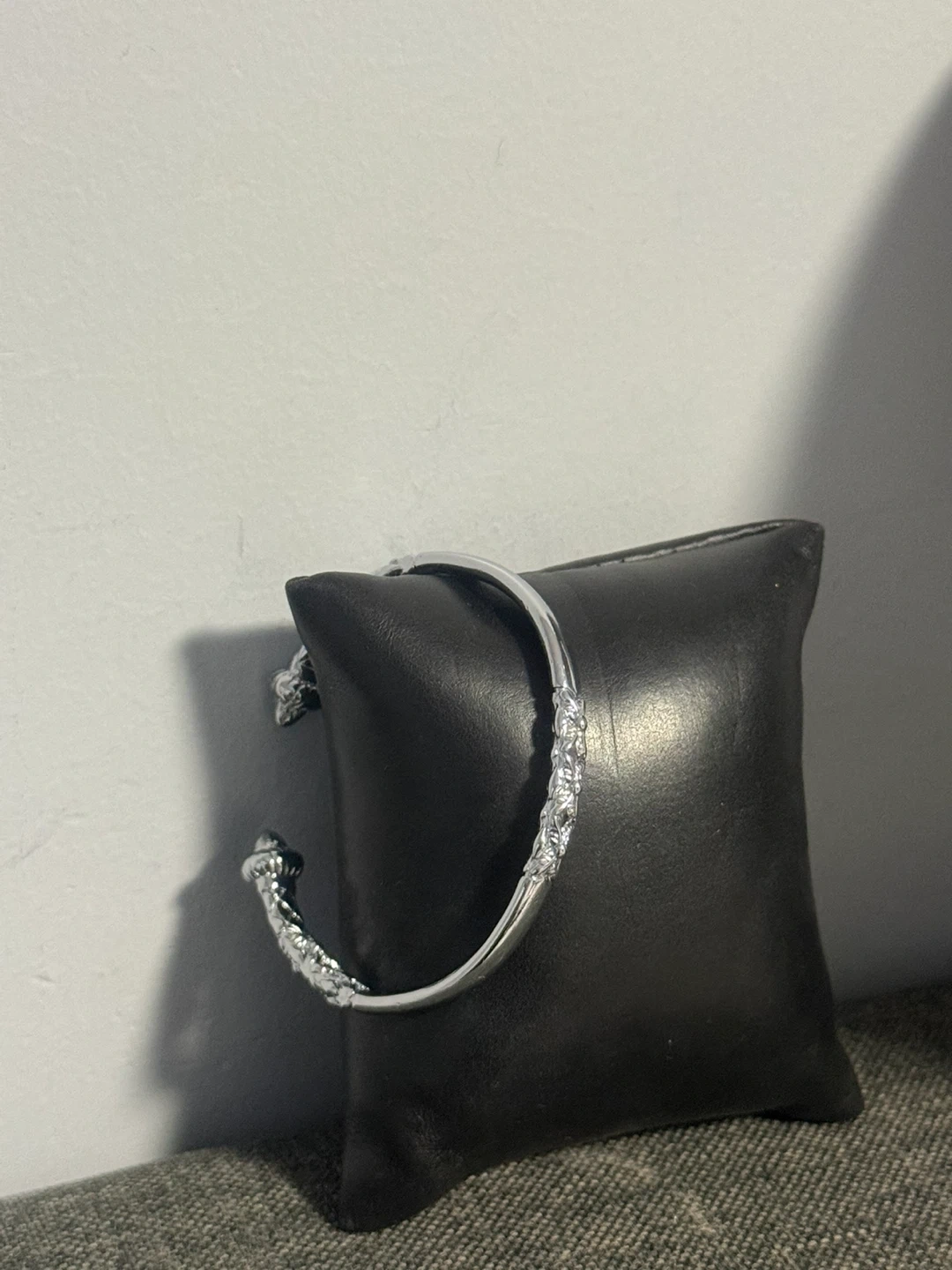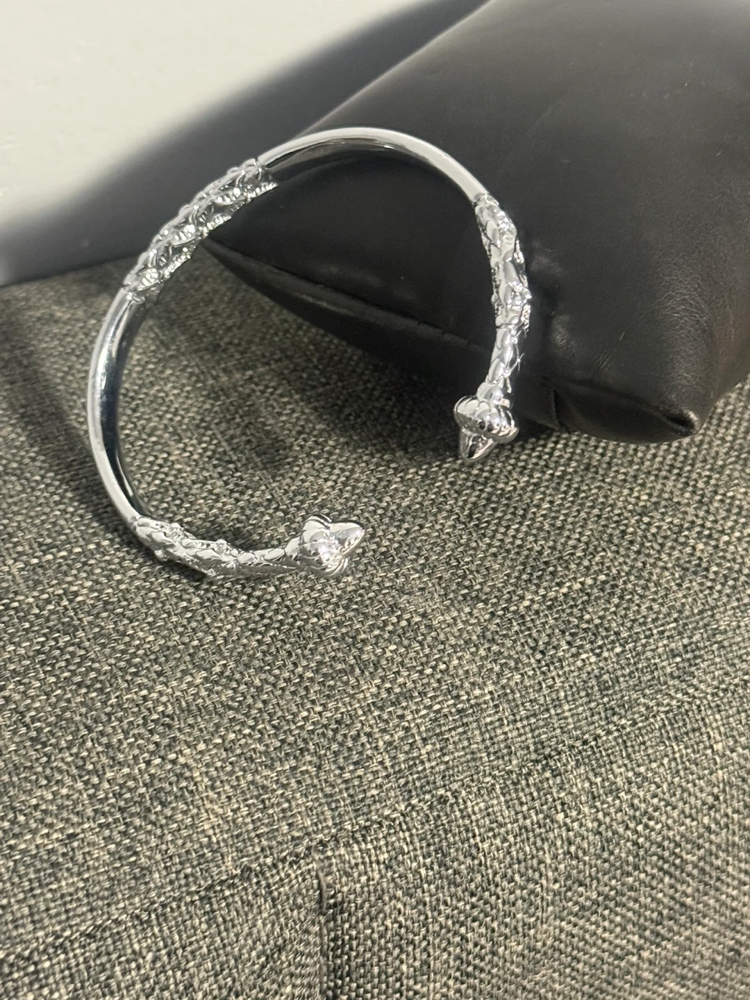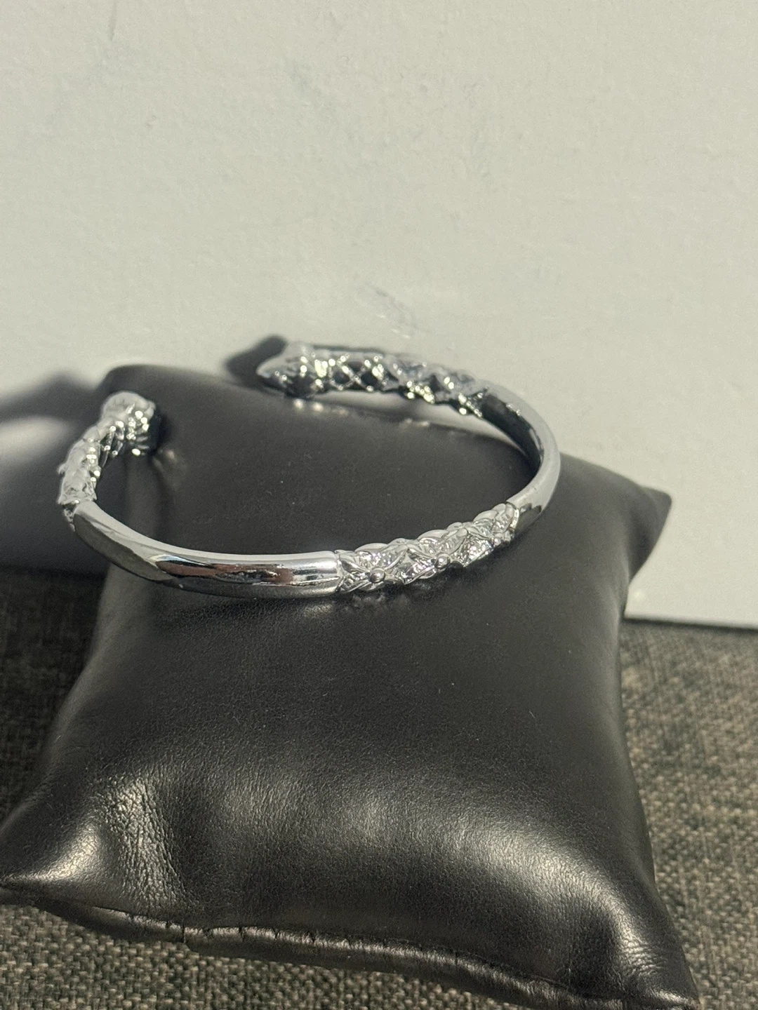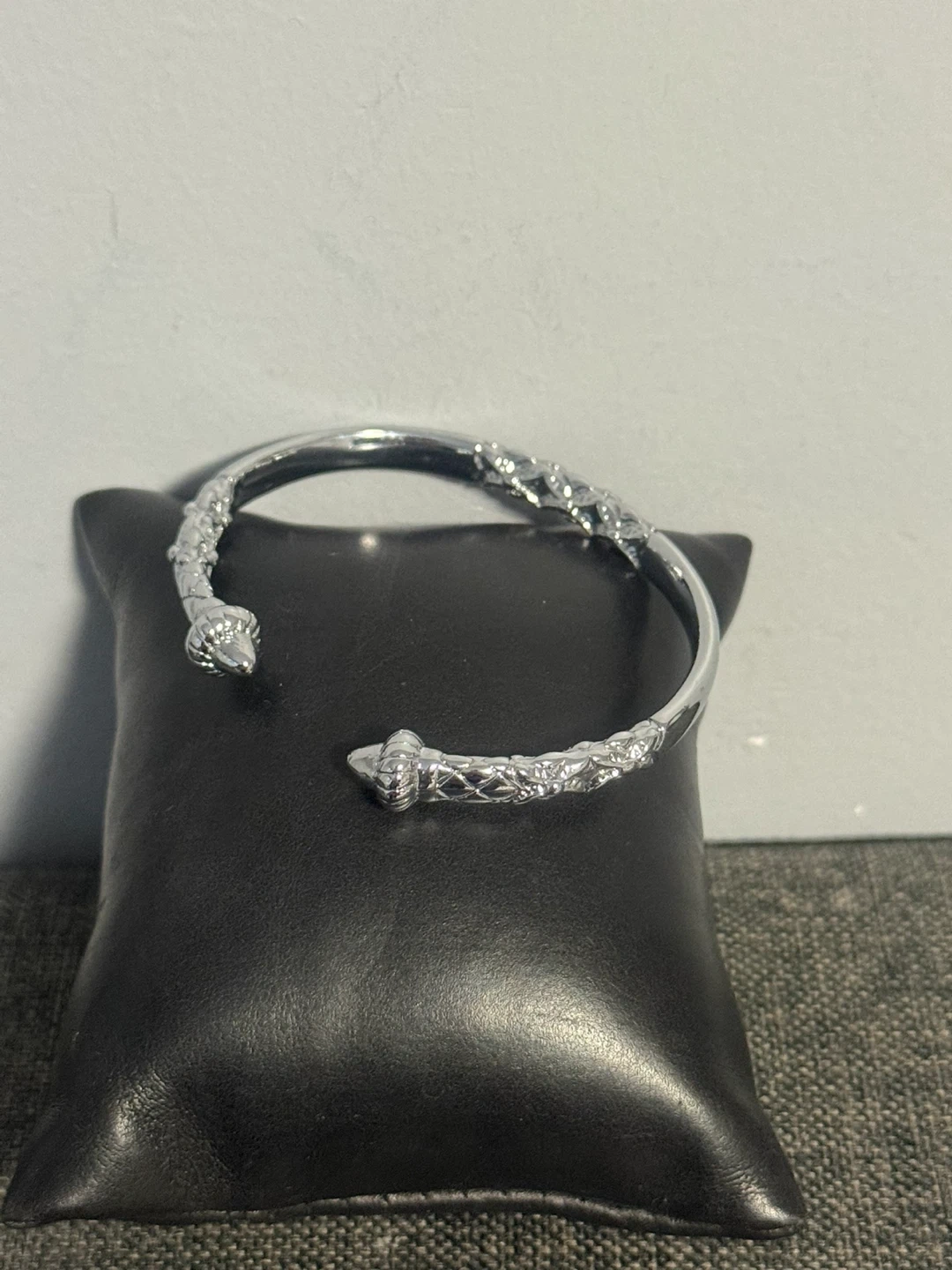 (It have good weight ) This silver-toned cuff bracelet features a detailed textured pattern along its length and ends. It's an open design, easy to adjust for a comfortable fit. It's a stylish accessory for any occasion!