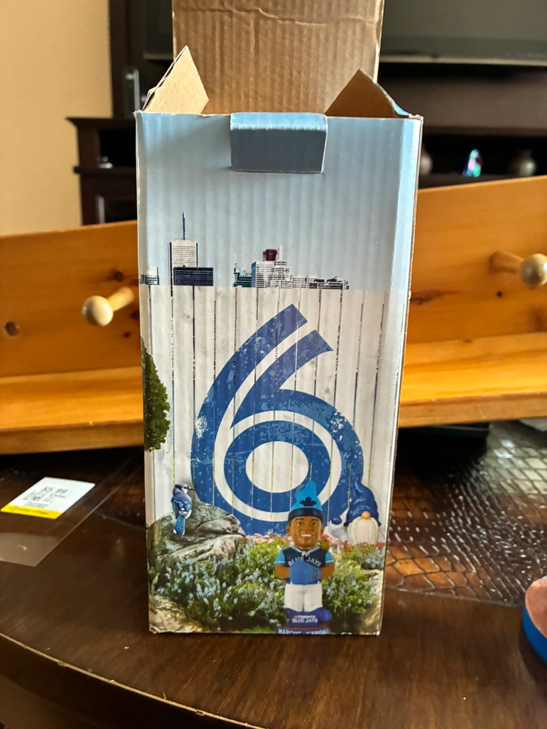 This is a Marcus Stroman Toronto Blue Jays knom . It features him in his team uniform. A great collectible for any Jays fan!