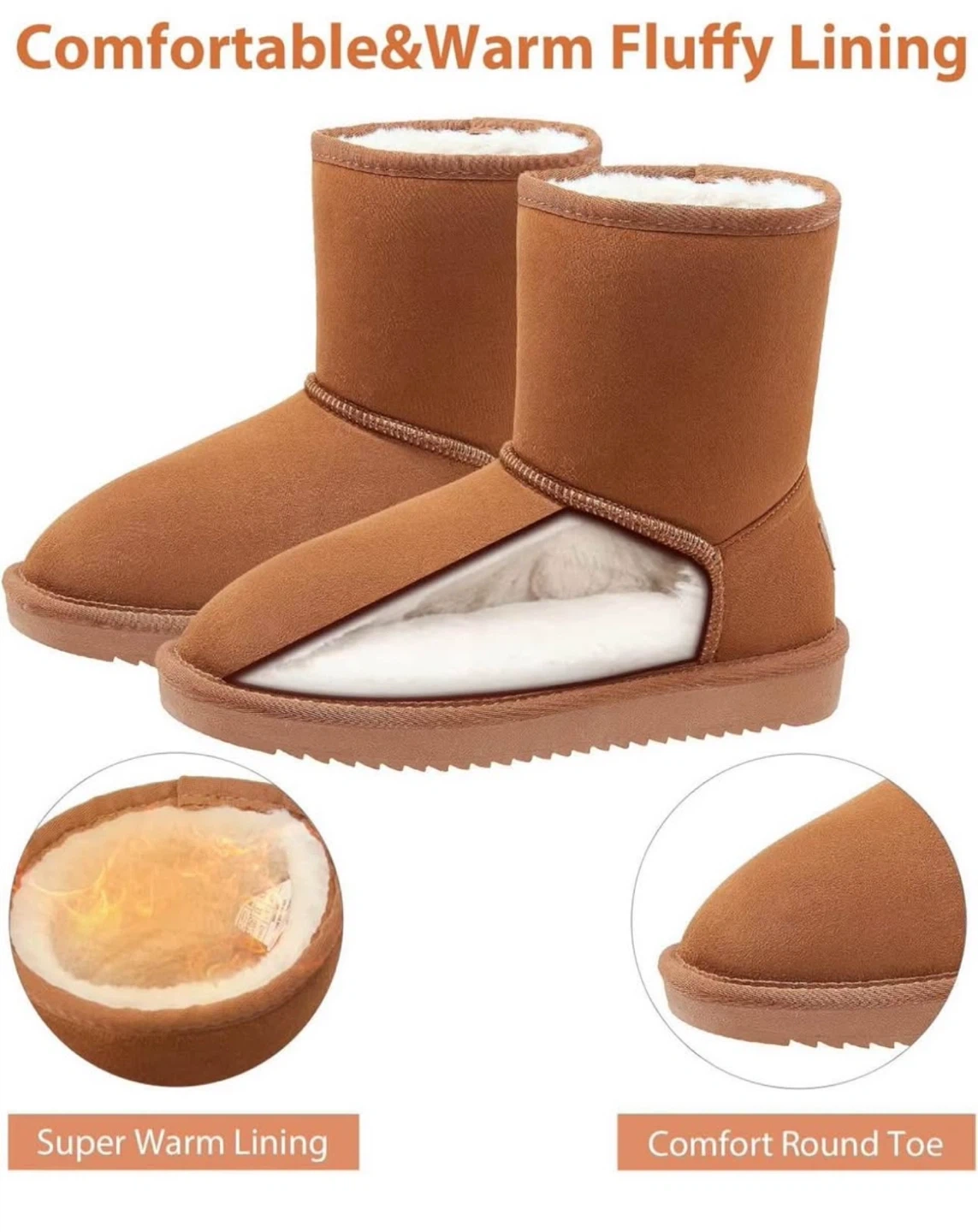 Comfortable and warm winter boots with a fluffy lining. Features a comfort round toe design and a durable sole. These boots are great for keeping your feet cozy during cold weather!