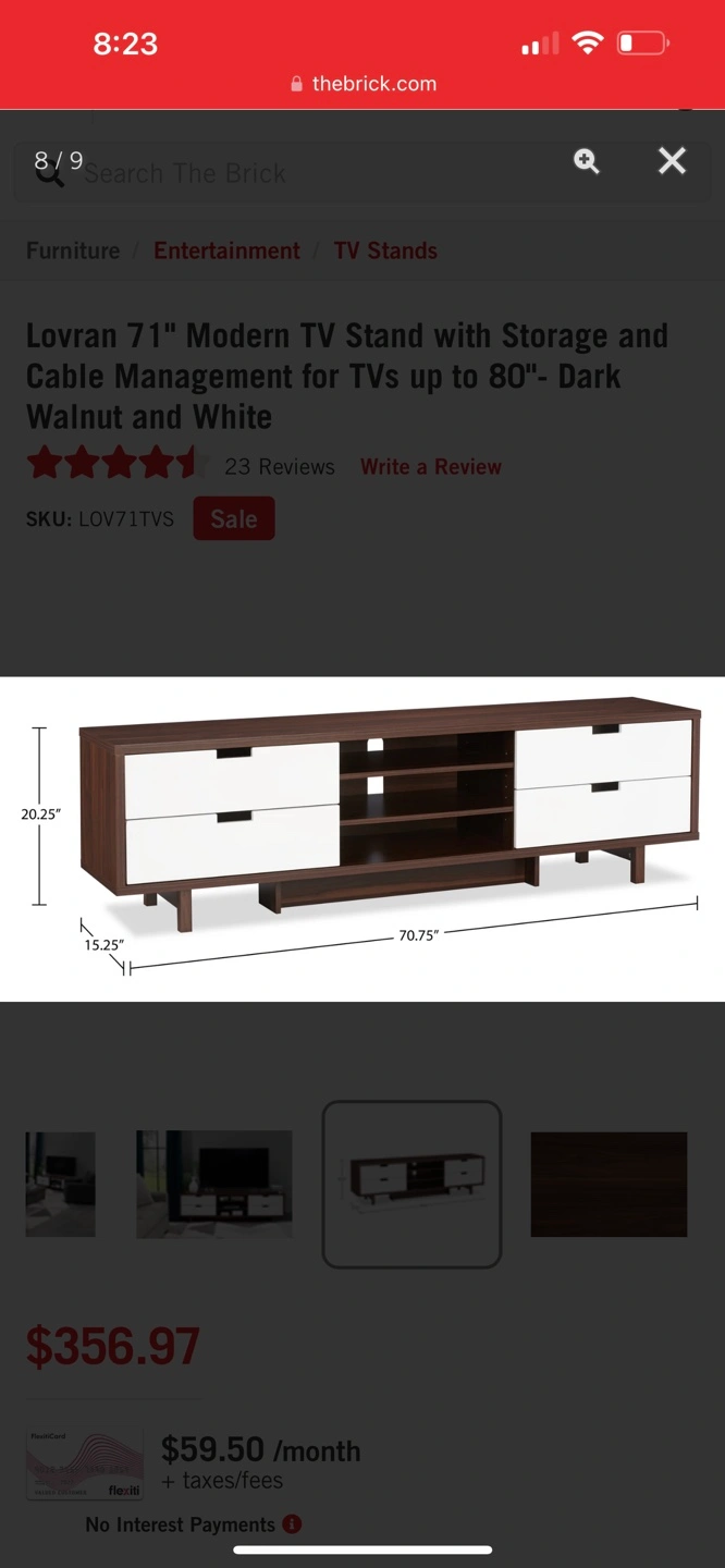 Lovran 71" Modern TV Stand with Storage and Cable Management for TVs up to 80"- Dark Walnut and White from The Brick