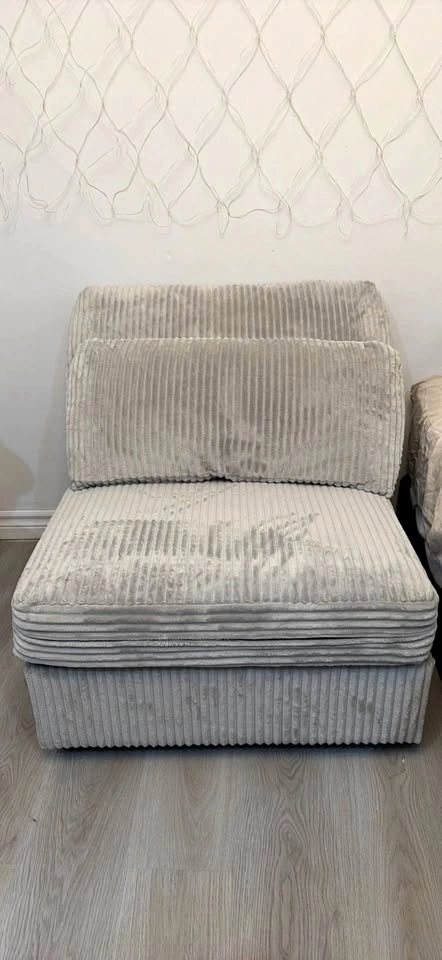Beautiful corduroy armless accent chair with a matching lumbar pillow. Very stylish and comfortable, perfect for a living room, bedroom, reading corner, or office space.