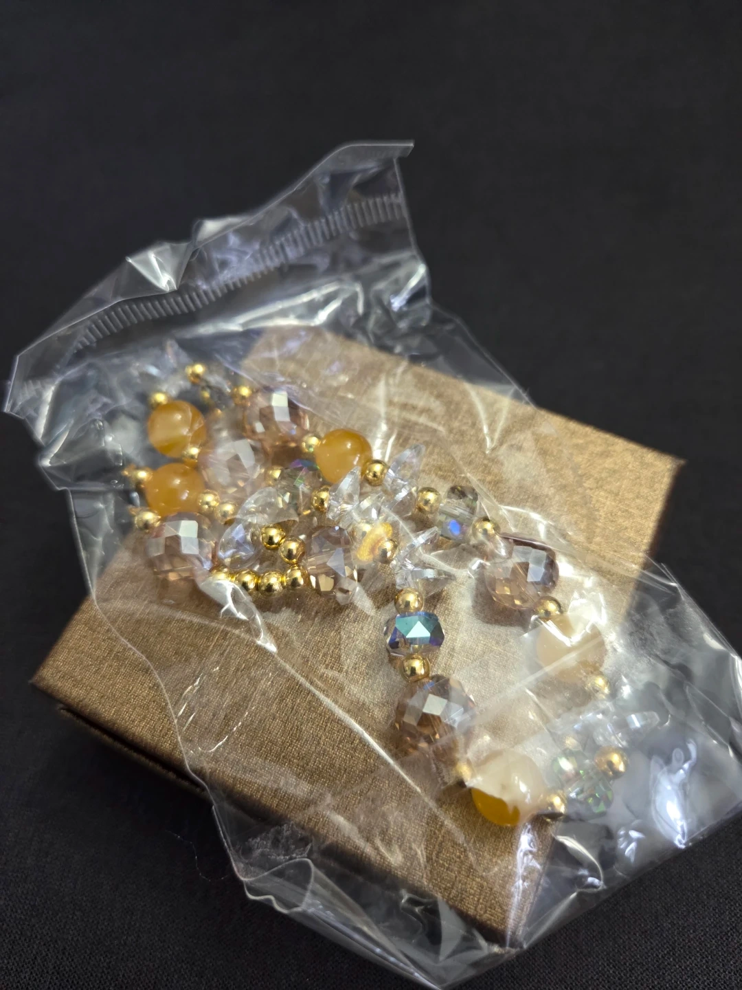 Selling a set of earrings that come with their original box! Get the golden beaded bracelet FREE with the earrings. They are both brand new and in excellent condition and ready to add a touch of sparkle to your day.