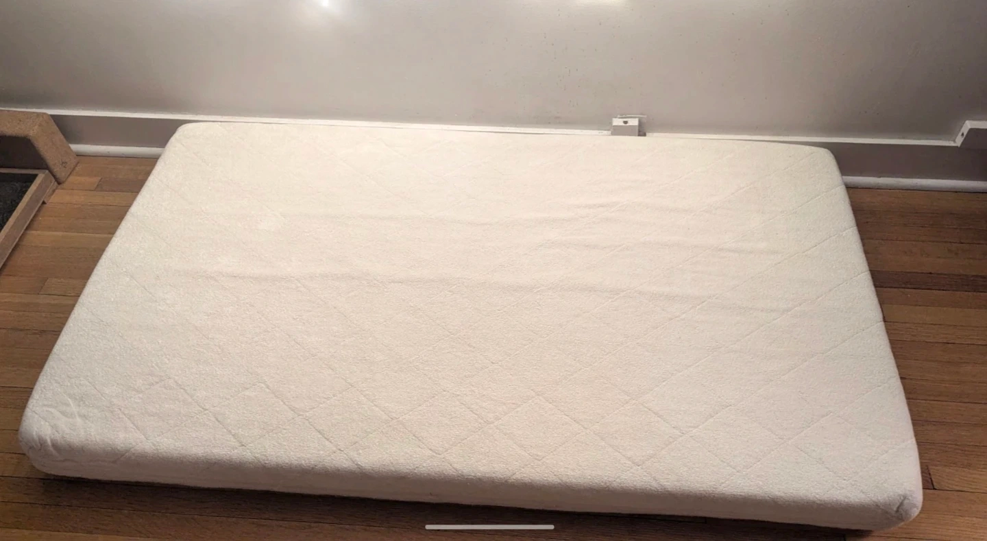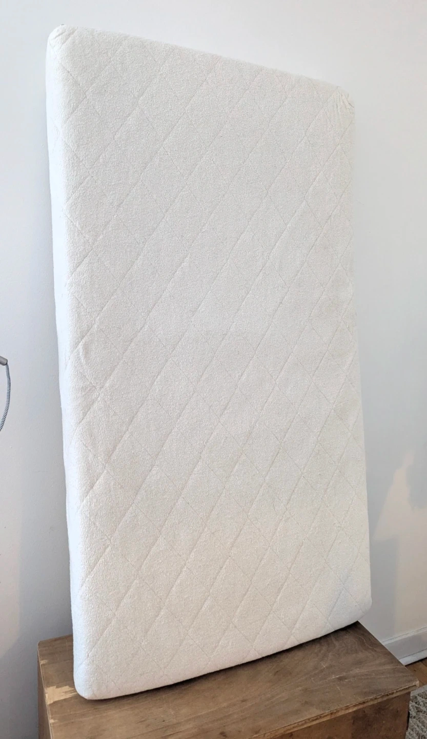 Soft cotton quilted standard sized crib mattress. One side is firmer to provide more support for infants and the other side is a little softer for toddlers. Purchased to use as a dog bed but my dogs prefer to use the sofa. Has always been used with a waterproof cover. Smoke-free home. Pick-up in Belgravia π