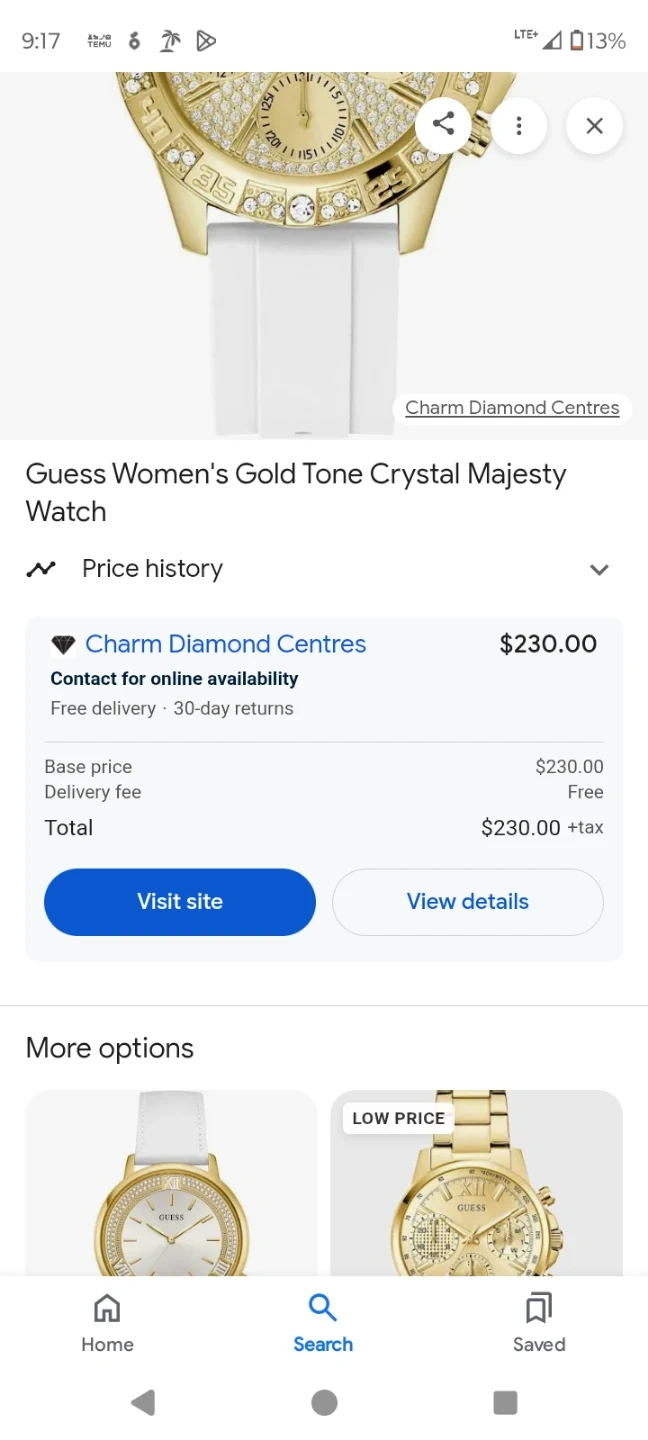 Guess Women's Gold Tone Crystal Majesty Watch