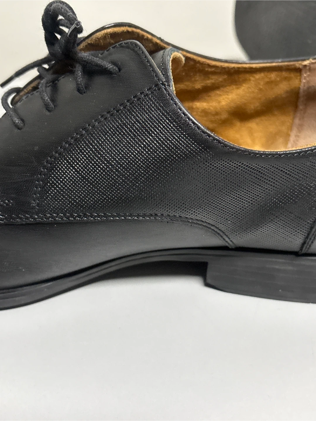 Classic black leather Oxford dress shoes from Florsheim. These shoes feature a durable sole and comfortable lining. They're suitable for formal events and business wear.