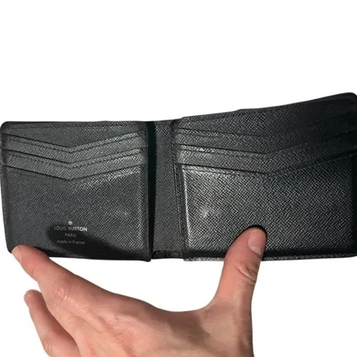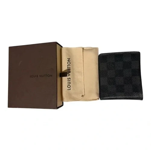 Coated canvas Louis Vuitton Men’s wallet. Comes with box and dust bag. Measurements: L 4" x H 3" x W 0.6". Condition: Very Good; light scuffing at exterior corners due to age and wear.