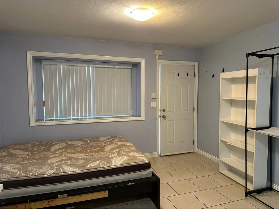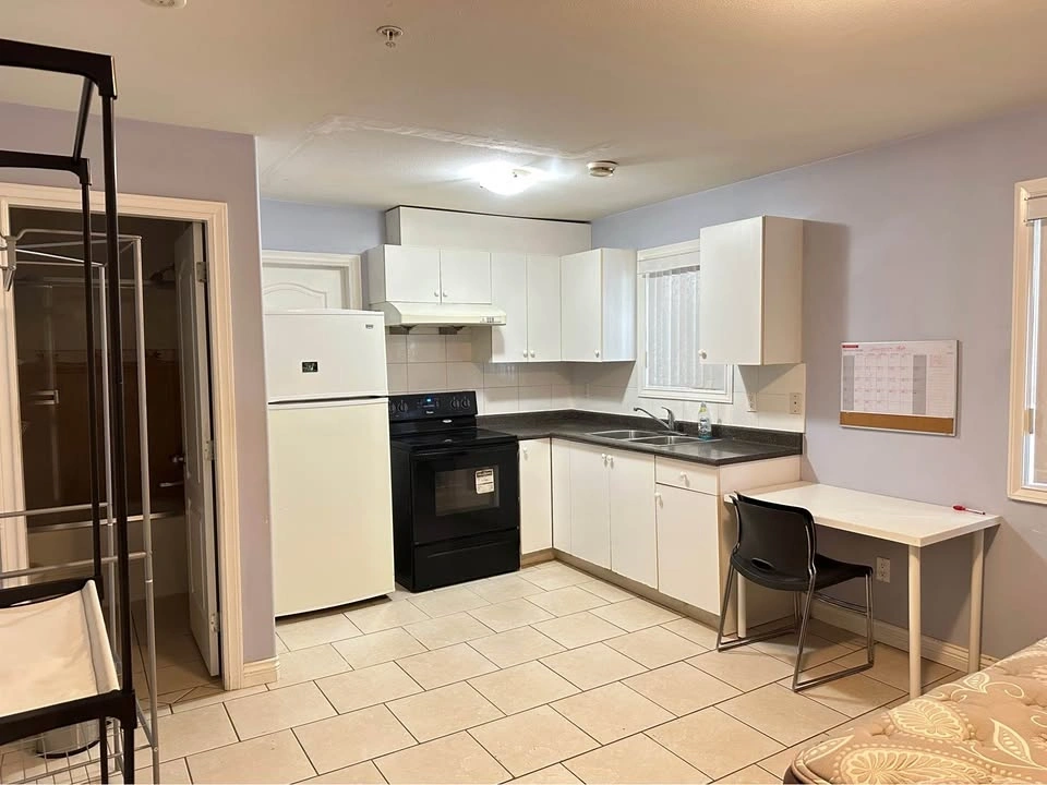 Fully furnished bachelor suite on the ground level of the house, featuring a kitchen, bathroom, private entrance, and shared coin laundry.