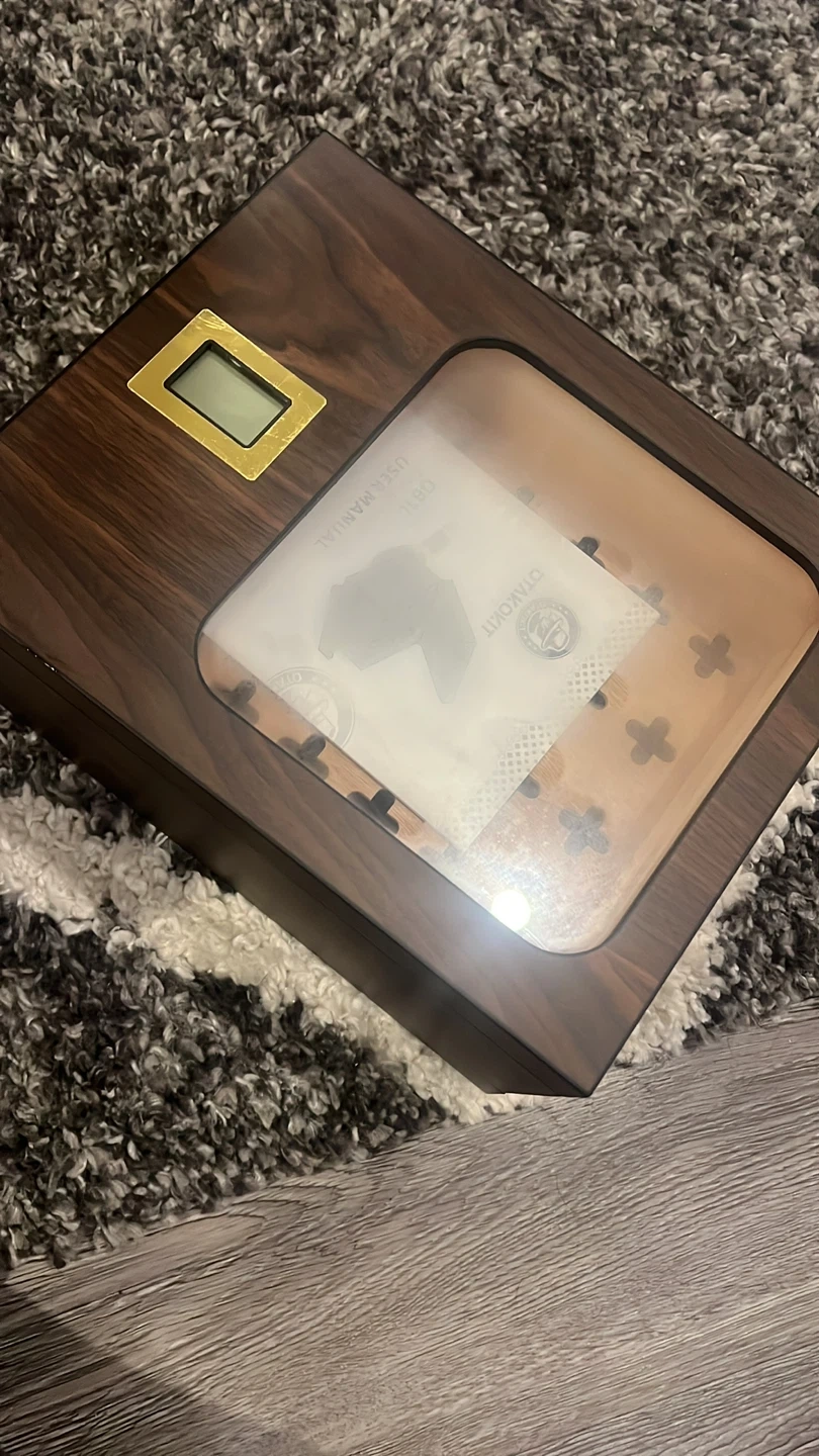 Selling a wooden cigar humidor in great condition as it’s brand new! It comes with all the accessories you need to keep your cigars fresh. The humidor features a built-in hygrometer to monitor humidity levels. It also includes dividers and a humidification device to maintain optimal conditions. Perfect for any cigar aficionado