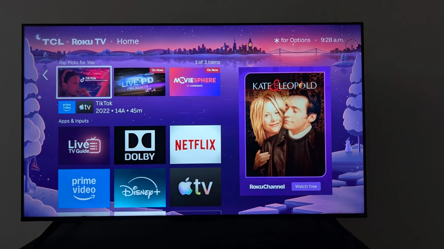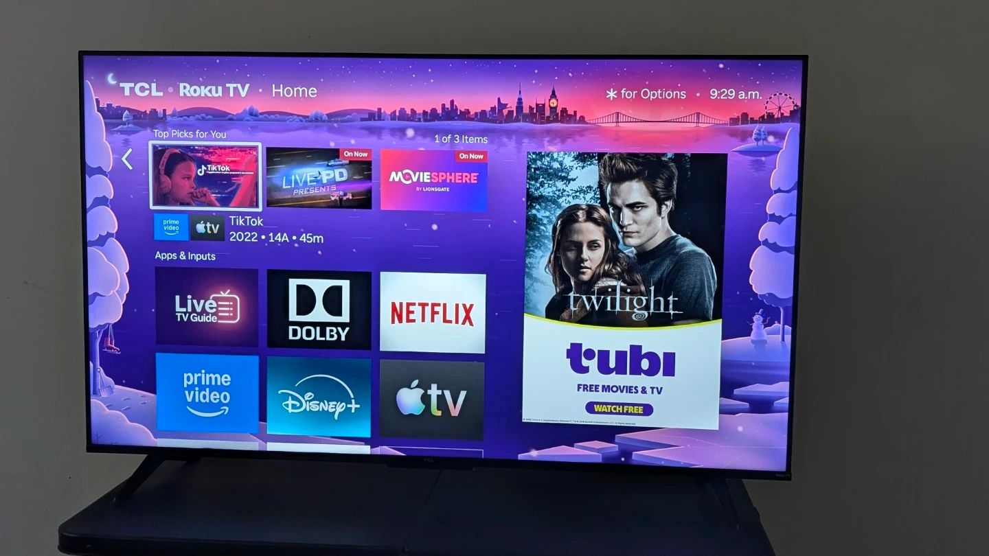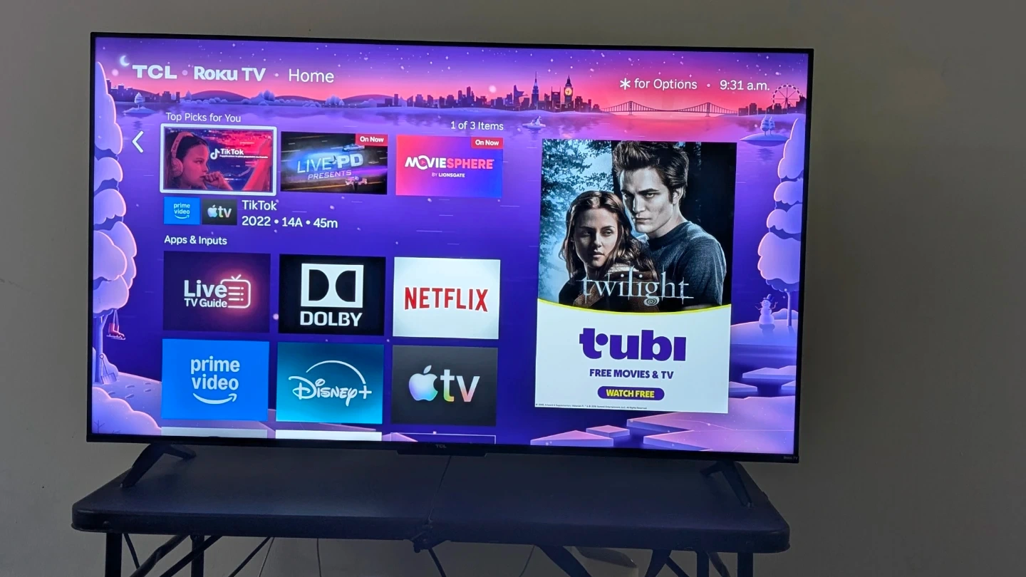 TCL Roku TV for sale. It's a smart TV with built-in Roku. Access all your favourite apps like Netflix, Disney+, Prime Video, and Apple TV. Great for streaming!