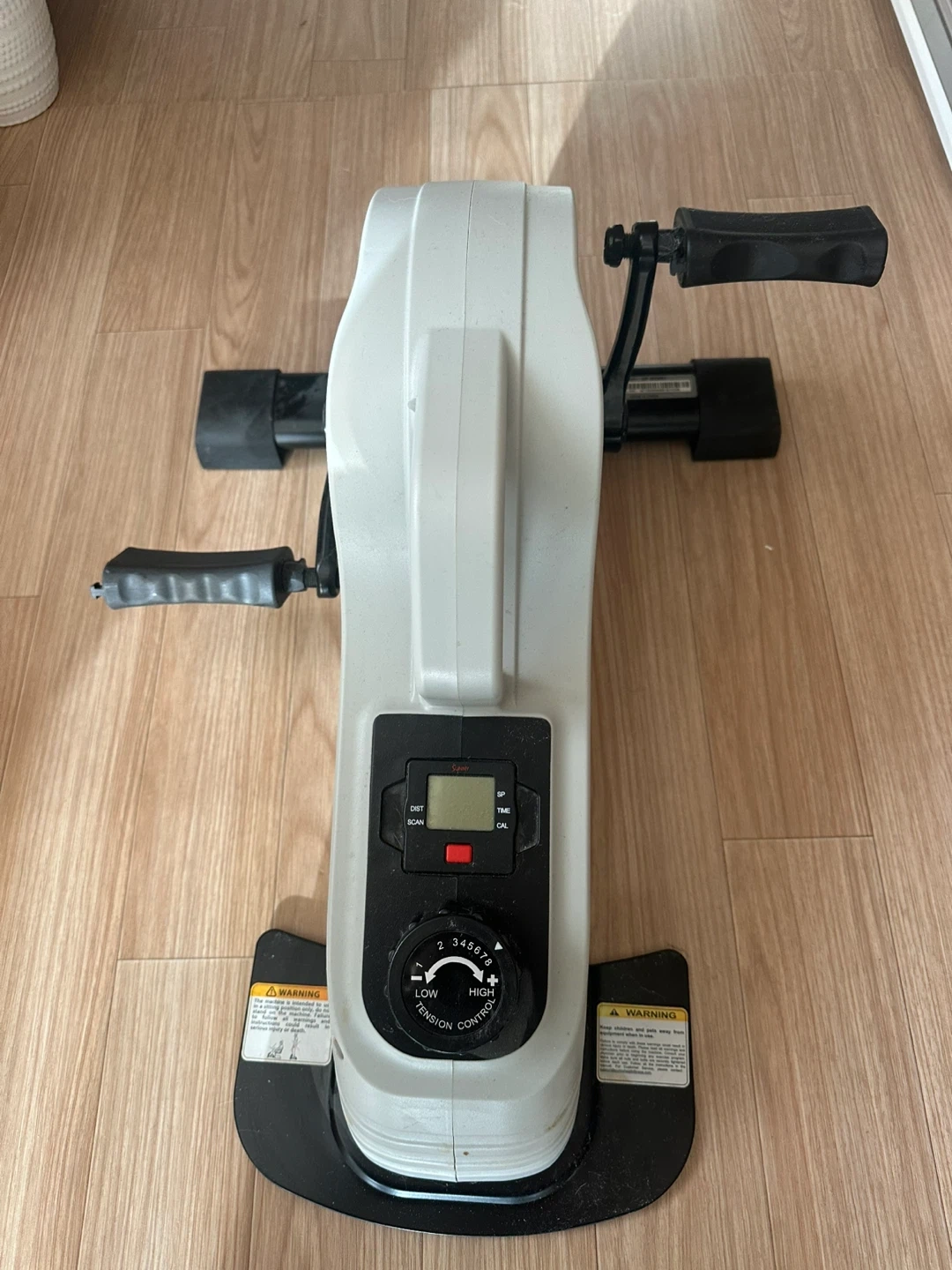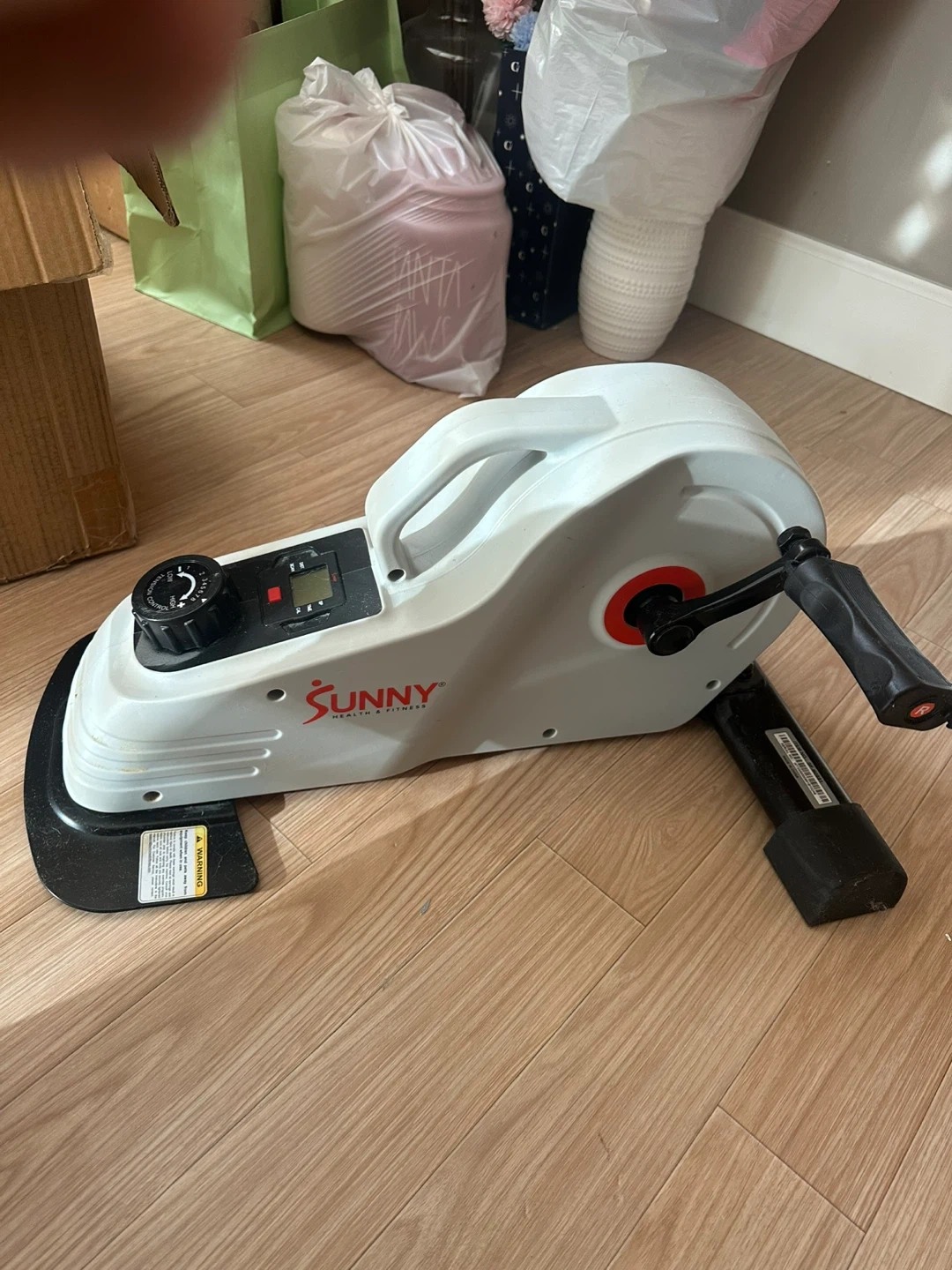 This compact Sunny Health & Fitness mini exercise bike is great for at-home workouts. It offers adjustable tension control for a customized session. Features a digital display showing distance, scan, time, and calories burned.