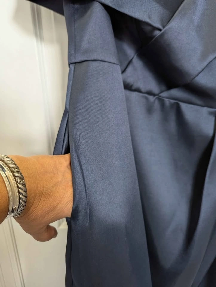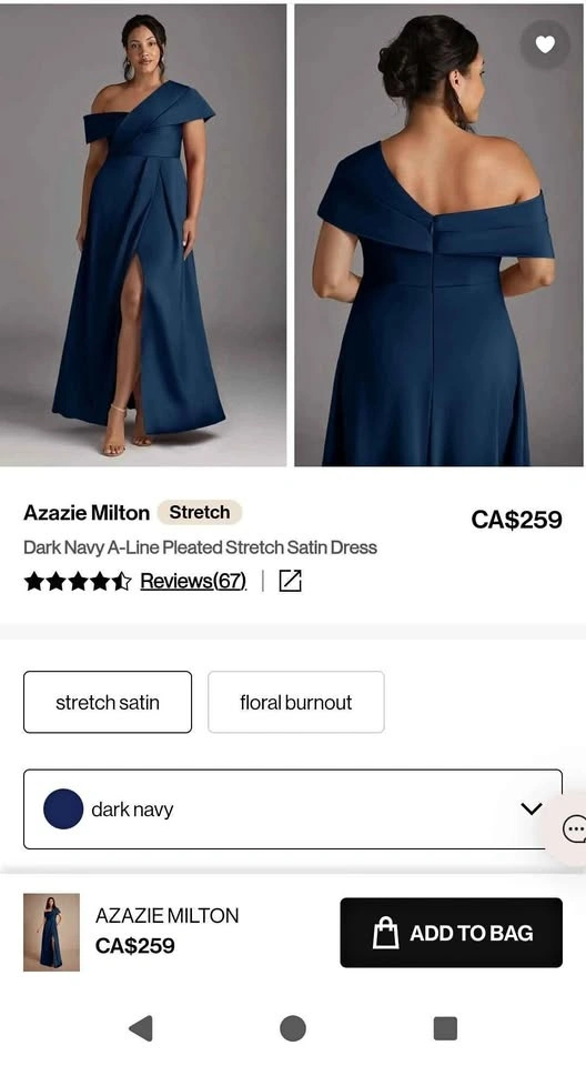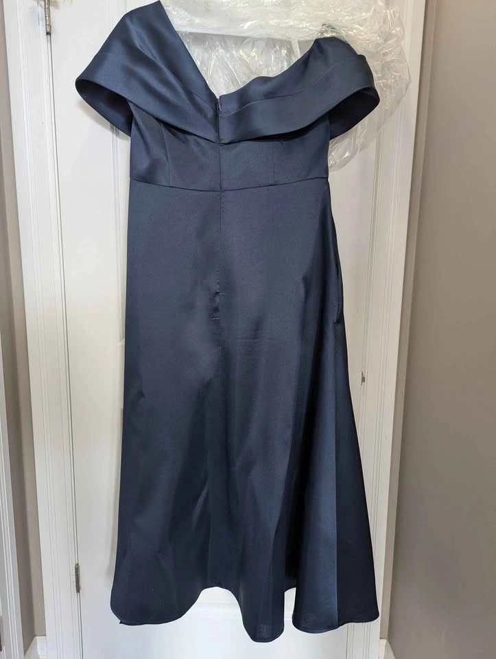 Beautiful navy blue gown worn once and now freshly dry-cleaned. No stains no rips. Perfect condition. Size 20. No alterations except for slightly shortened.