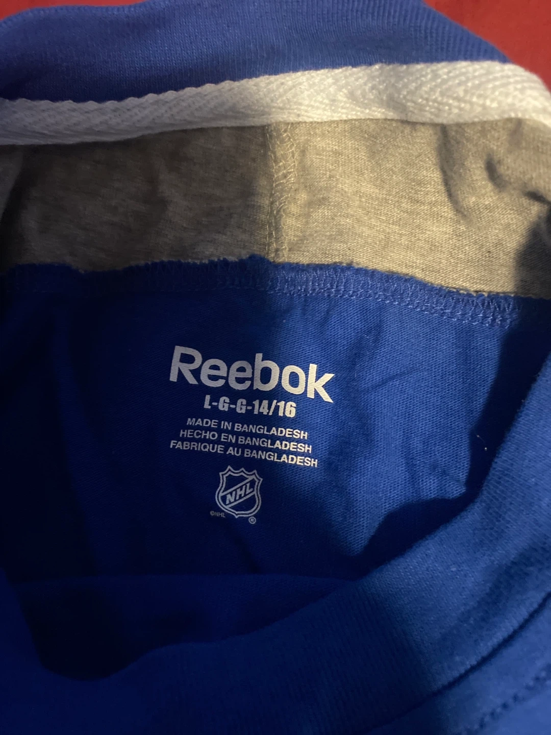 Reebok long-sleeved shirt featuring the Toronto Maple Leafs logo. Made in Bangladesh. Size L (14/16).in boys