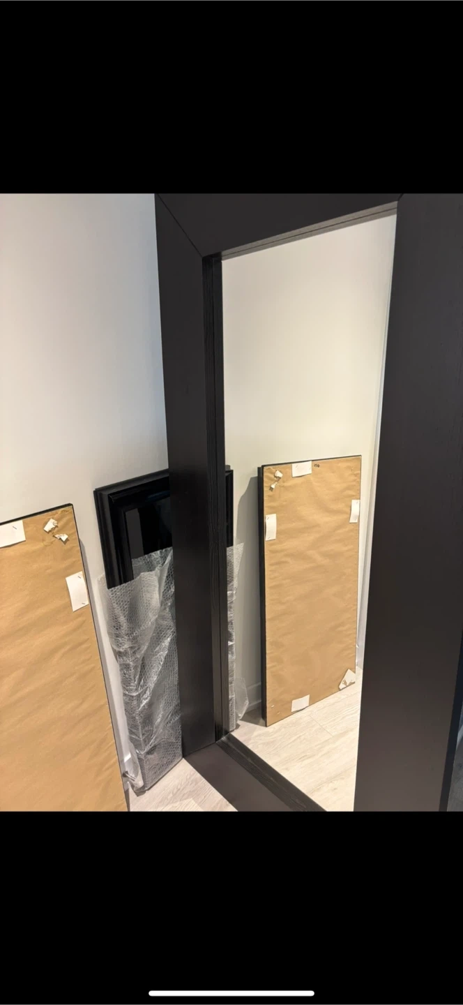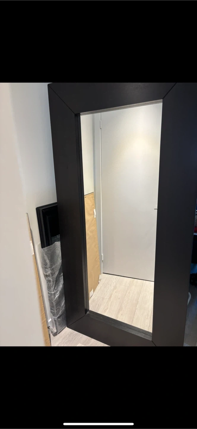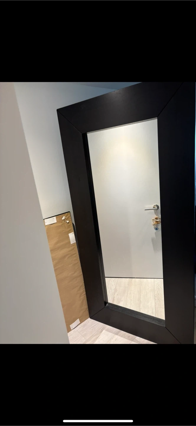 Selling a large oversized wooden framed mirror with a sleek black frame.