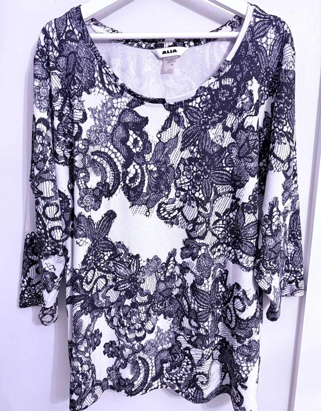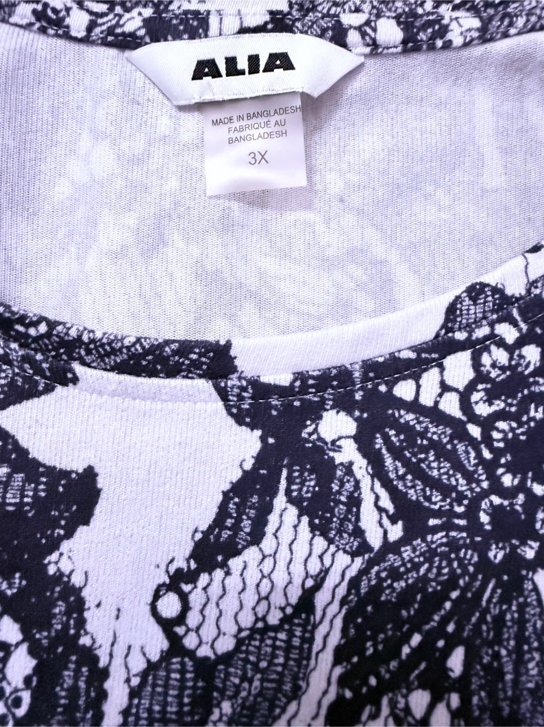 Alia Women's 3X Black and White Lace Print Top