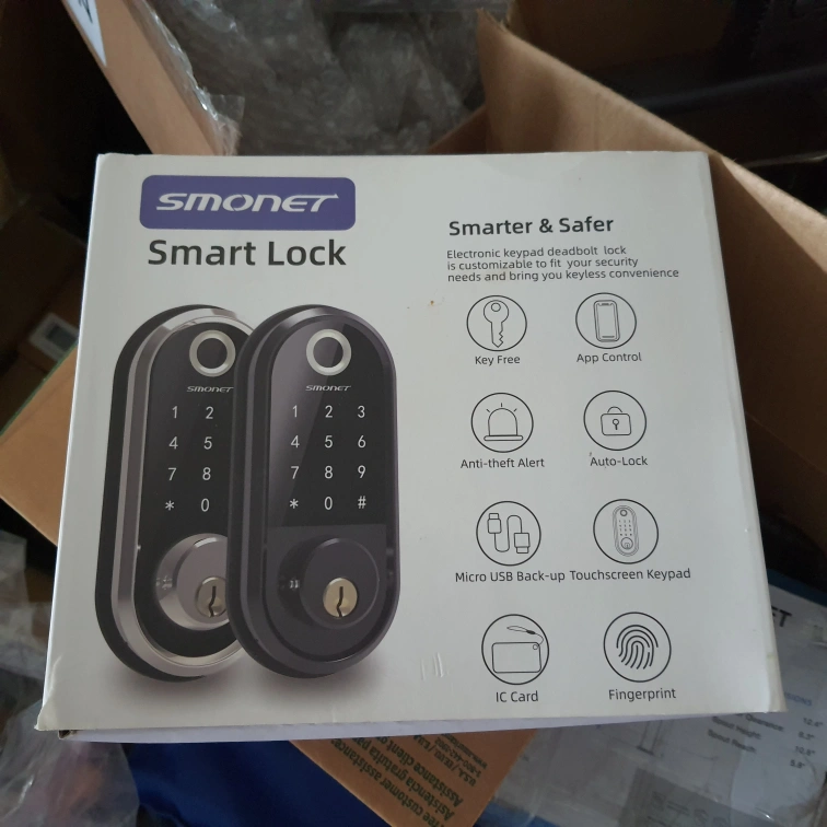 This SMONET smart lock offers key-free entry and app control. It features anti-theft alerts and auto-lock functions.
