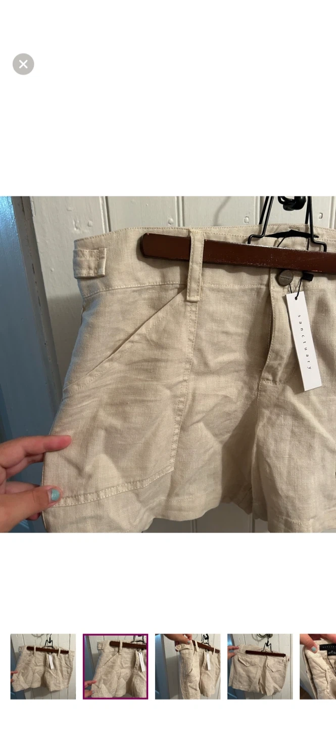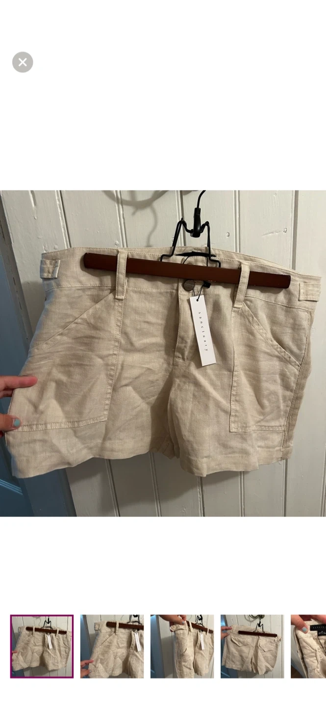 Sanctuary brand (for revolve). Tan linen shorts. Thinner material. Size women’s 28. Brand new with tags $60