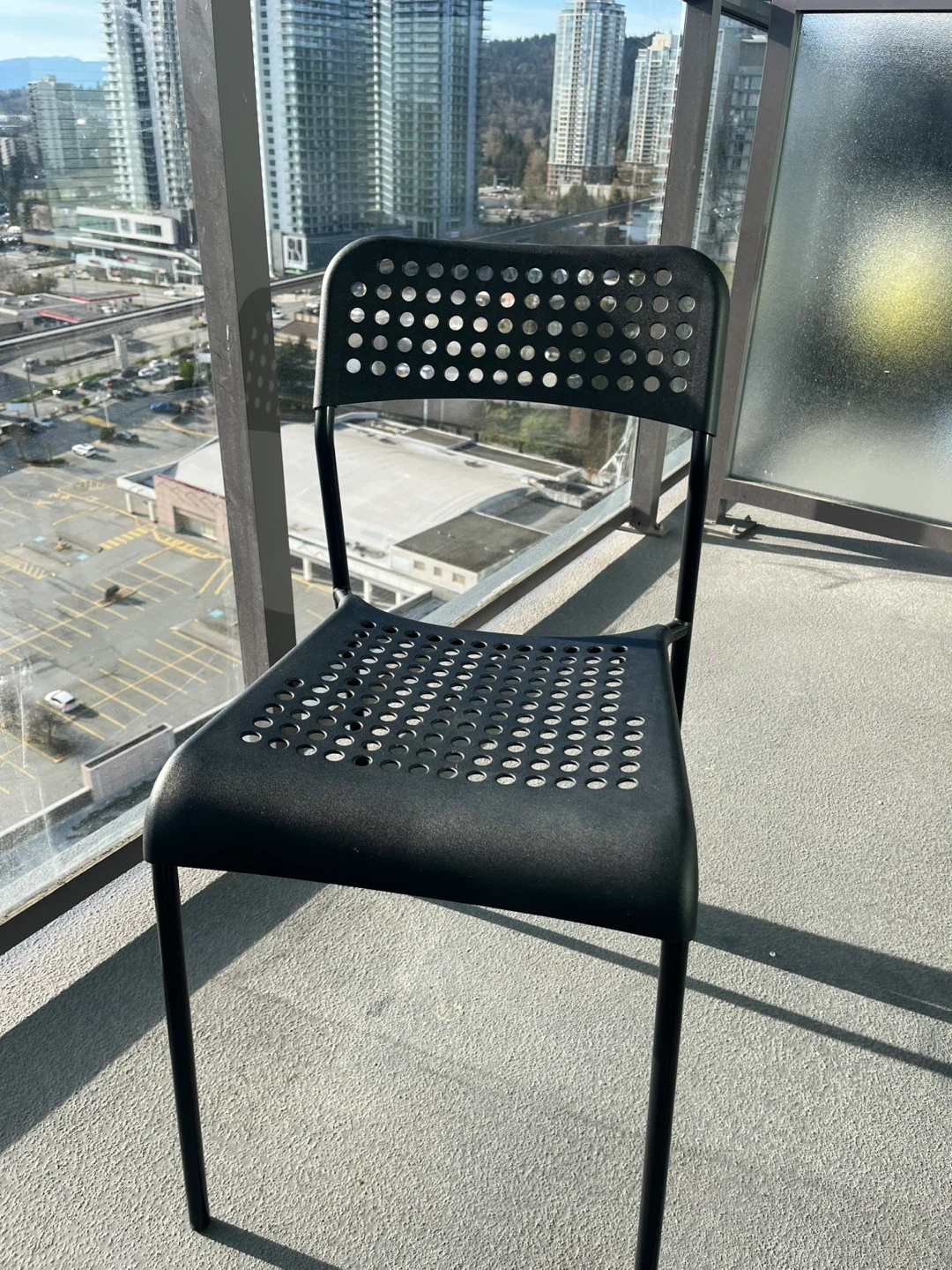 This set includes one white plastic side table and two black chairs. You can buy the whole set for $40 or each item separately.