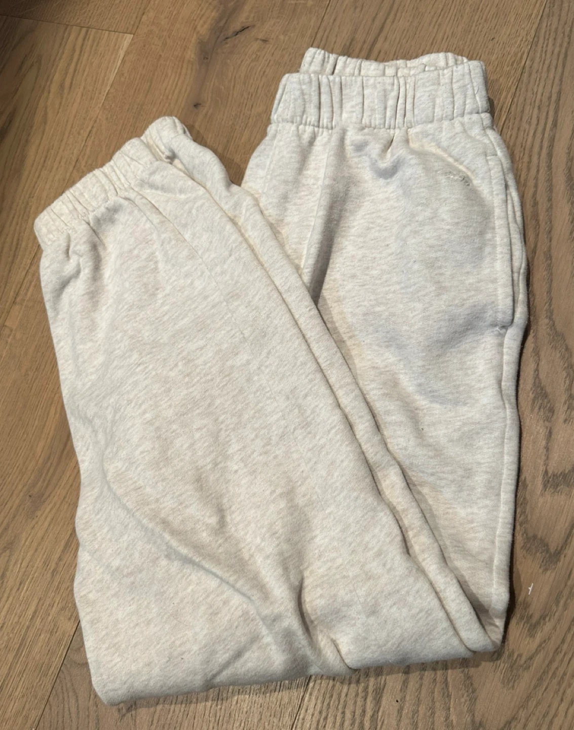 Hollister sweatpants in size XS. With a cinch hem and are cream coloured. They are in great condition and have been barely worn. Also are very stretchy size in flexible.