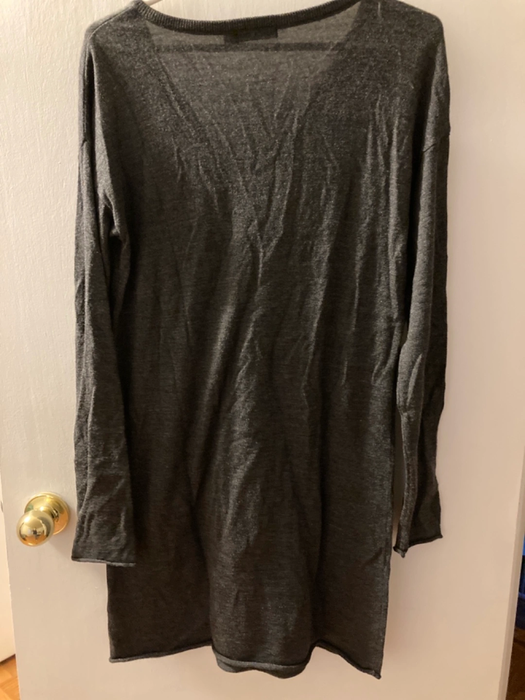 Long sleeve charcoal grey sweater dress. V-neck. Two pockets. Size M. Soft material.