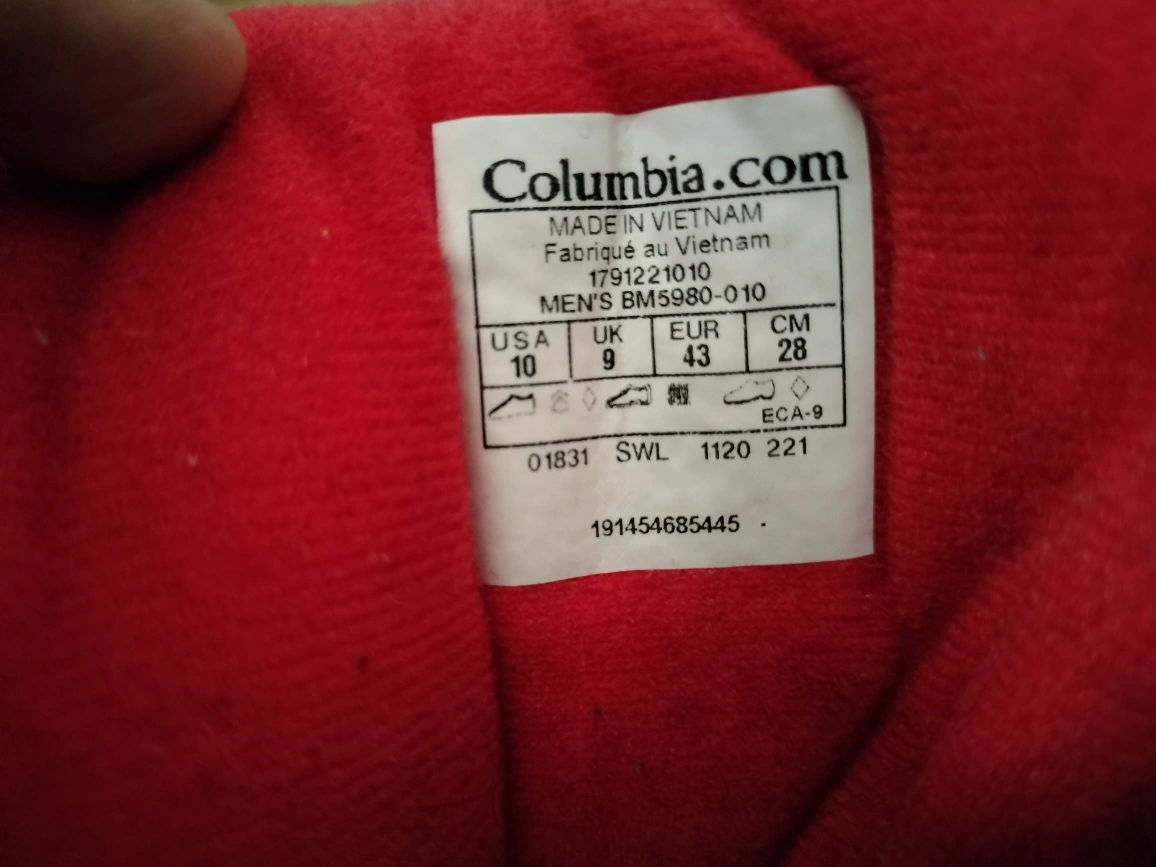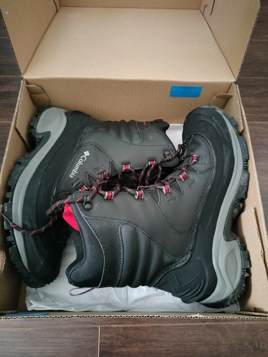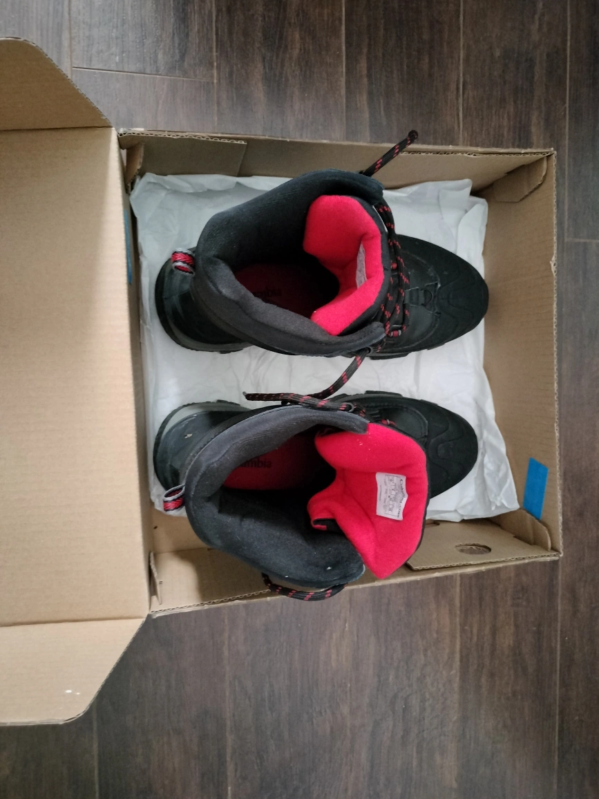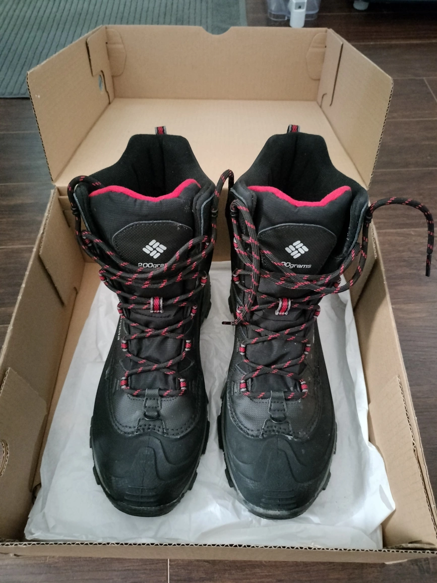 original Columbia Black winter boots with red laces. Size 10 US, 9 UK, 43 EUR.