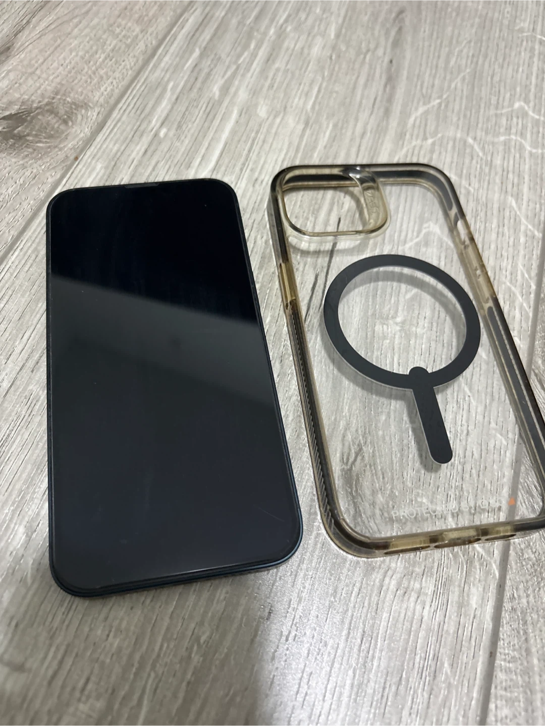 Selling an Apple iPhone 13 128Gb dark blue. It's in used condition with 75% maximum battery capacity. Includes a clear MagSafe compatible case.