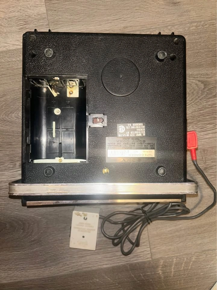 Cool vintage Sony O-Matic Tapecorder. Has the original Sony dynamic microphone. Controls for volume, tone, and all the tape functions like record, fast forward, and rewind. Also a blank tape! Great for collectors or just a neat display piece. No cover for battery or batteries included.
