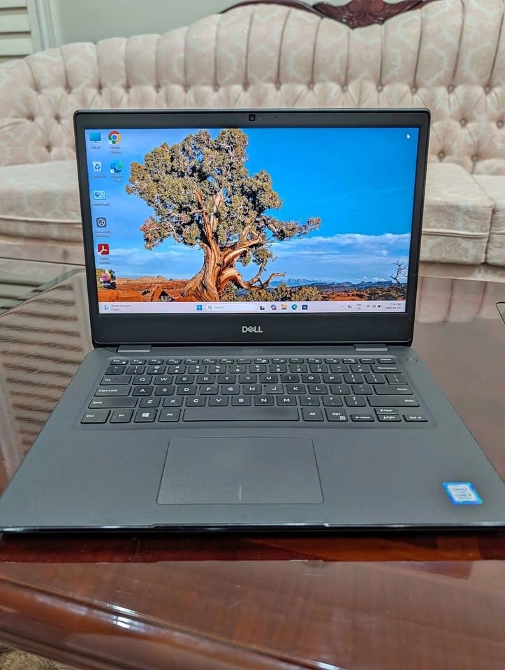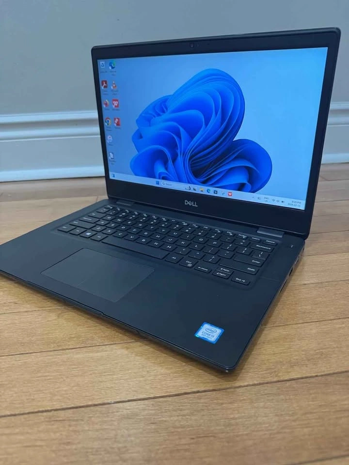 DELL Latitude 3400 Laptop. 14.1-inch screen, Intel Core i5 8th Gen processor, 8GB RAM, 256GB SSD. Features camera, WiFi, HDMI, USB, and Type-C ports. Runs Windows 11. Battery lasts 3+ hours. Comes with Dell charger. Located near Redwillow Road in Brampton.