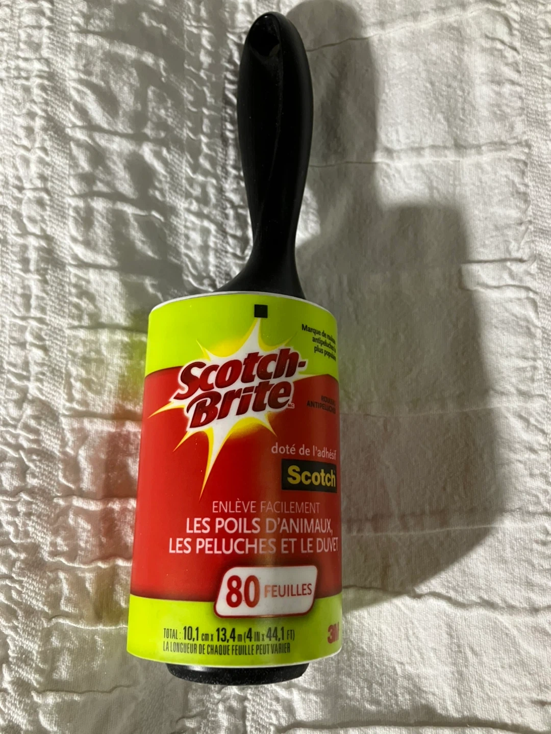Keep your clothes and furniture looking their best with this Scotch-Brite lint roller! It easily removes pet hair, lint, and fuzz. Each roller has 80 sheets, and the total size is 10.1 cm x 13.4 m (4 in x 44.1 ft)