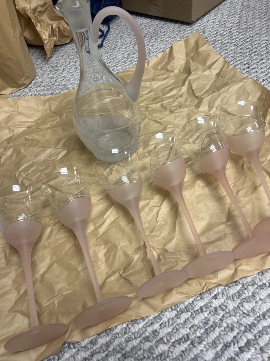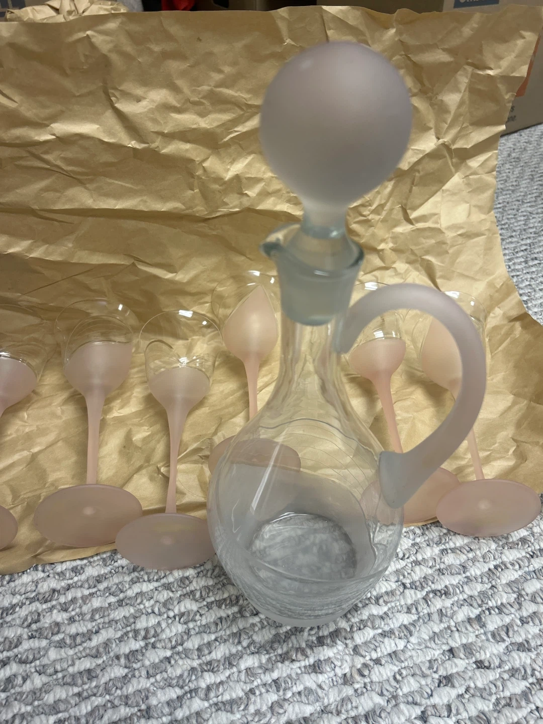 Frosted Pink Wine Glasses and Decanter Set