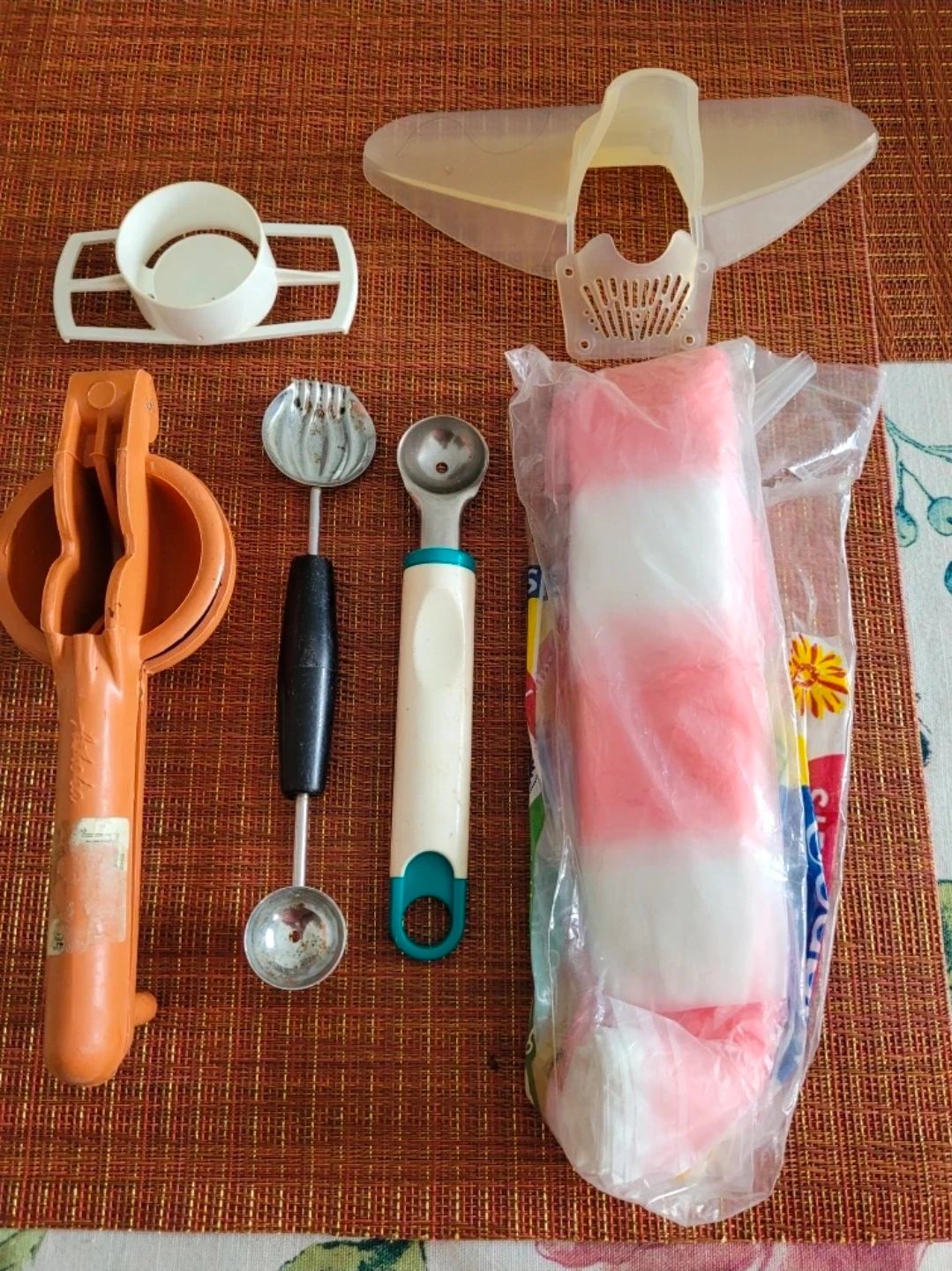 Selling a set of vintage kitchen gadgets! Includes a citrus juicer, melon baller, and other unique tools. Great for collectors or anyone looking to add some retro charm to their kitchen. Condition is used, but they're still functional and ready for a new home
