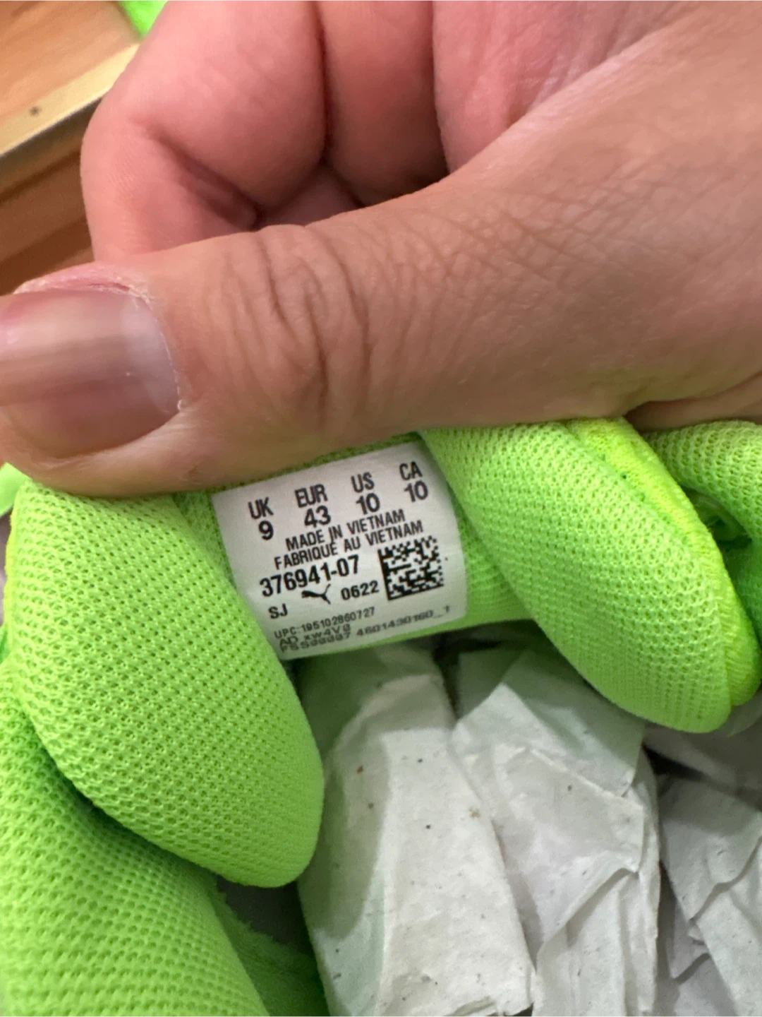 Men's size 10, EUR 43, UK 9, CA 10. Made in Vietnam.