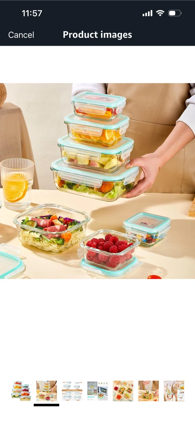 Set of new 6 glass food storage containers. Includes various sizes ranging from 150ml to 1040ml. Features airtight lids for freshness. These are great for meal prep and leftovers! Pick up at Islington /401 / bergamot avenue Etobicoke.