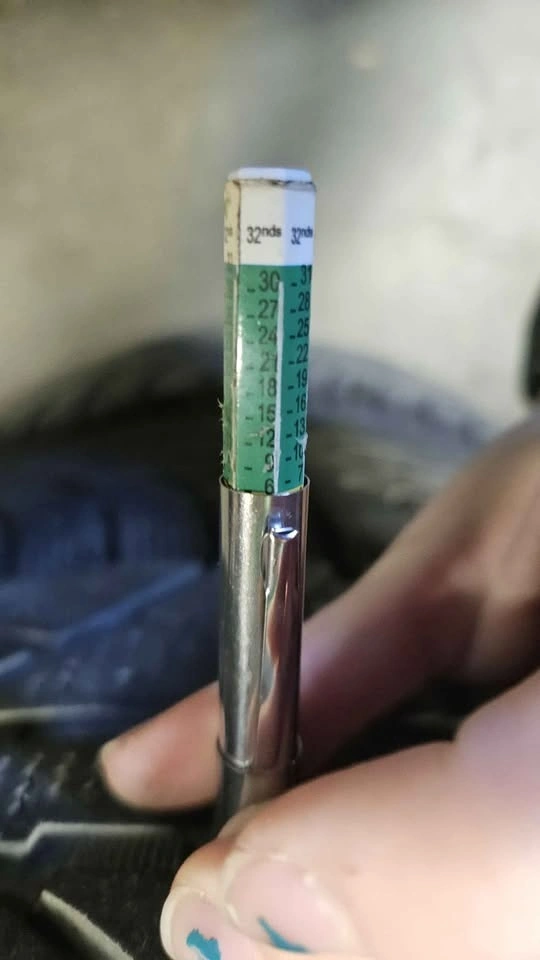 2 tires have just over 7/32" or 70% tread remaining and the other 2 have 6/32" or 60% left.