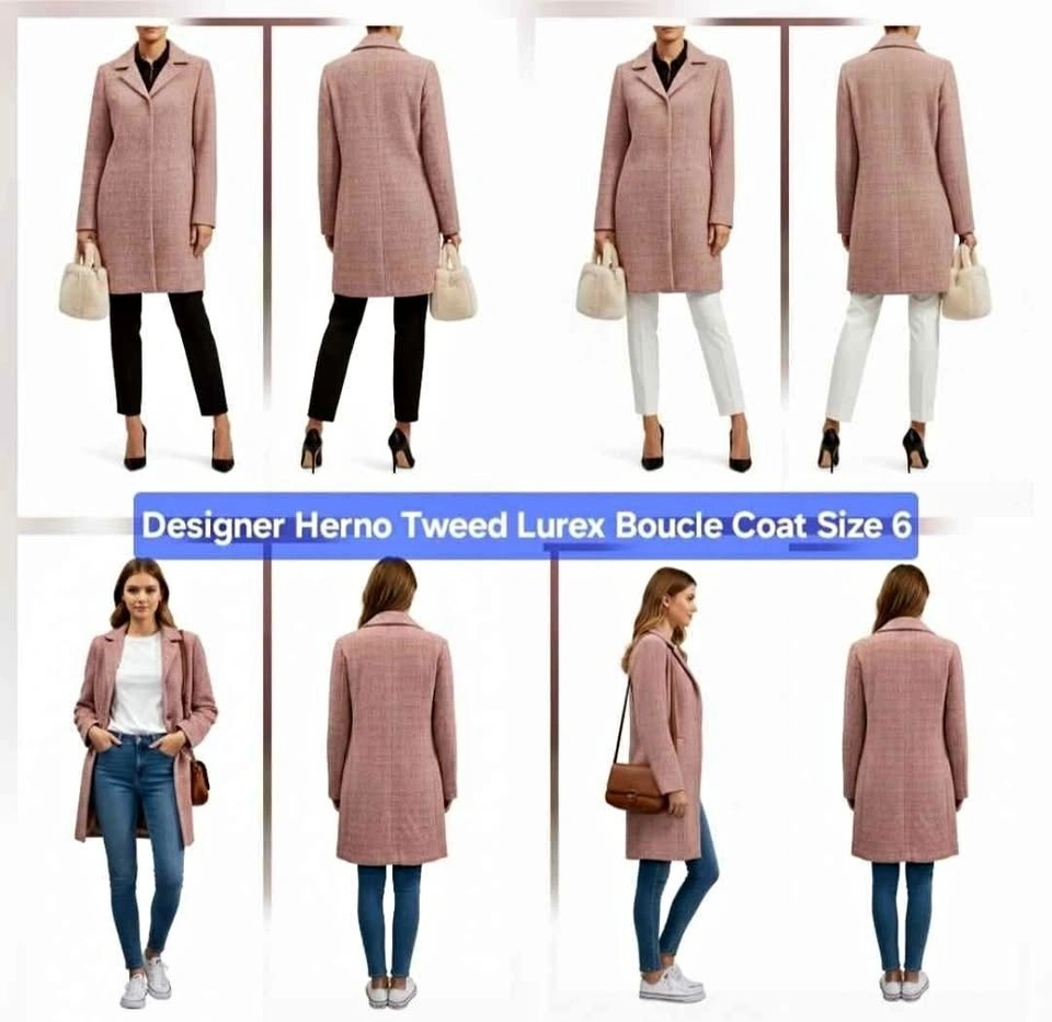 Designer Herno Tweed Lurex Bouclé Coat Size 6