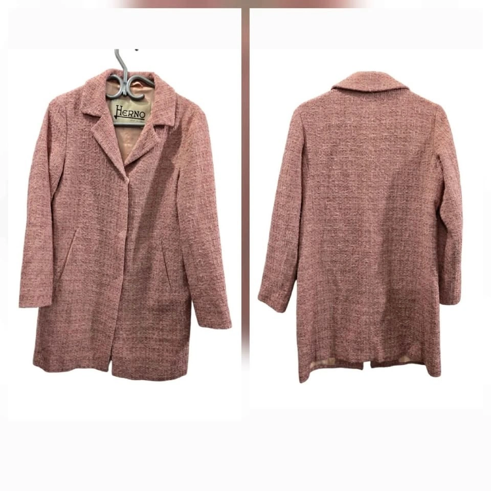 Herno size 42 is equal to US size 6. Condition 8.5/10. No visible flaws, but some wrinkles and minor general wear from being worn. Shell: Cotton/viscose/polyamide blend. Lining: Acetate/polyester blend. Lightweight tweed coat for spring to fall. Concealed snap button closure. Two side pockets. Lurex detailing. Knee-length. Original Retail Price: CAD 1700 including taxes. Pick Up: North York Finch Subway Station or near downtown subway line.