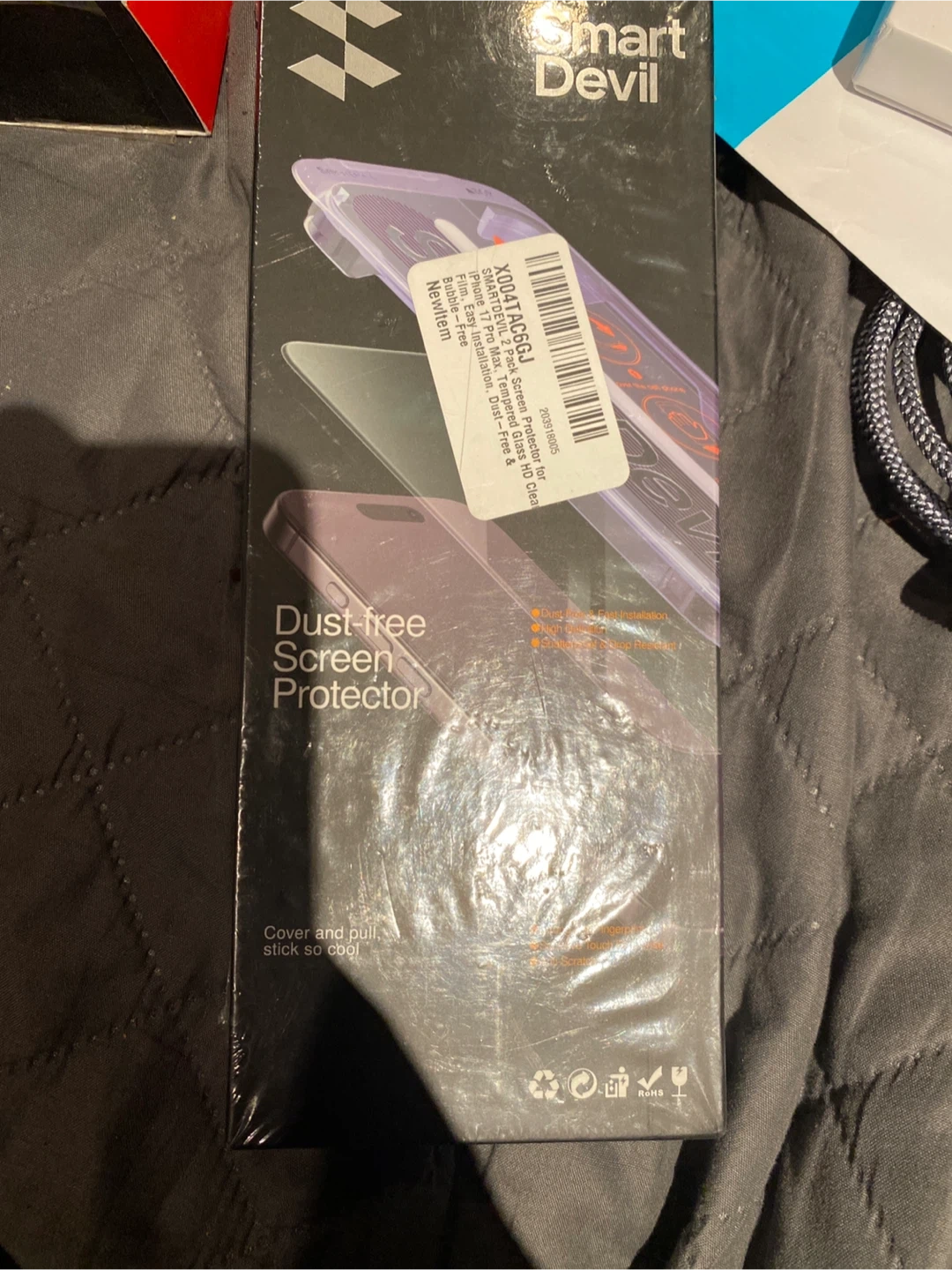 This Smart Devil dust-free screen protector is designed for the iPhone 17 Pro Max. It offers dust-free and fast installation, high definition, strong anti-fingerprint, and is scratch-resistant. Made with 9H glass, it easily withstands daily impacts. It's great for keeping your phone screen pristine!
