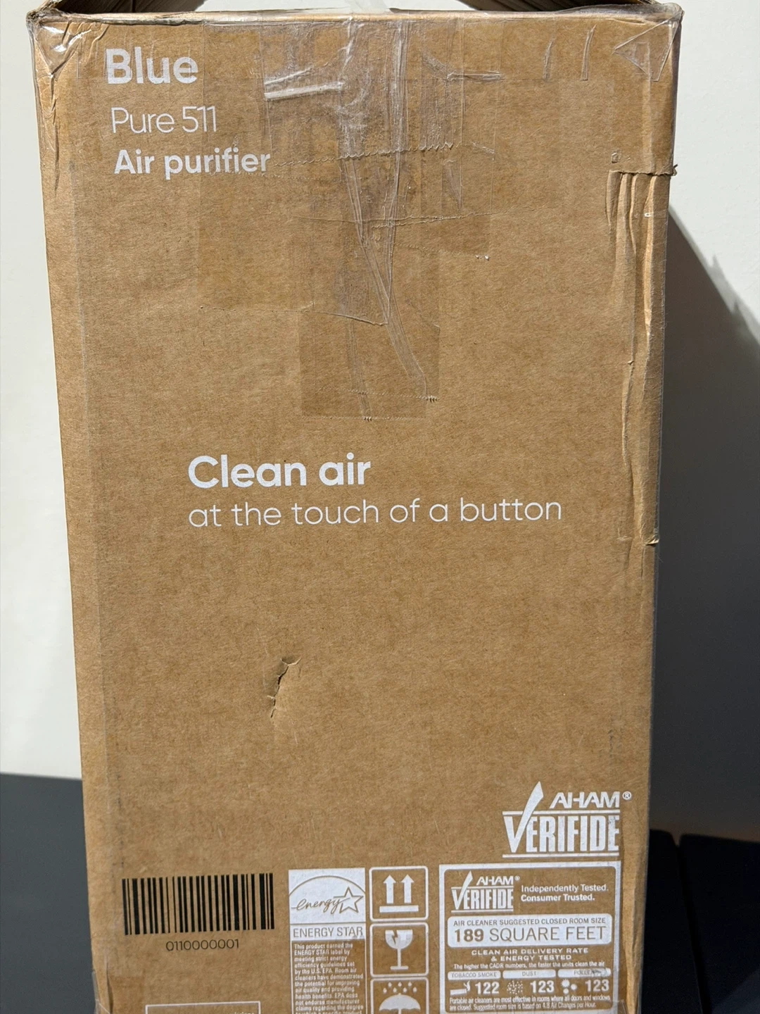 This Blueair air purifier is the Pure 511 model. It's designed for closed room sizes up to 189 square feet. AHAM Verifide for independent testing. Clean air at the touch of a button!