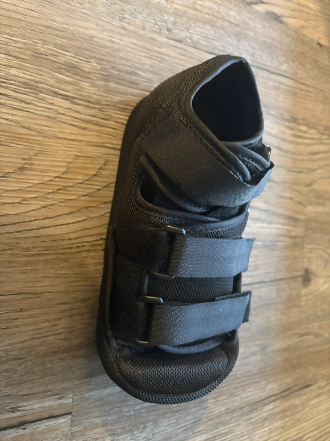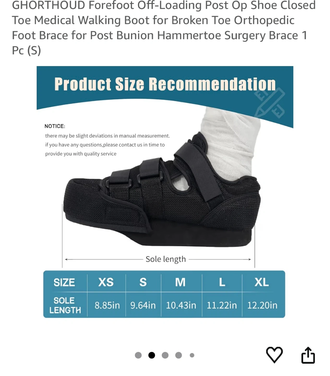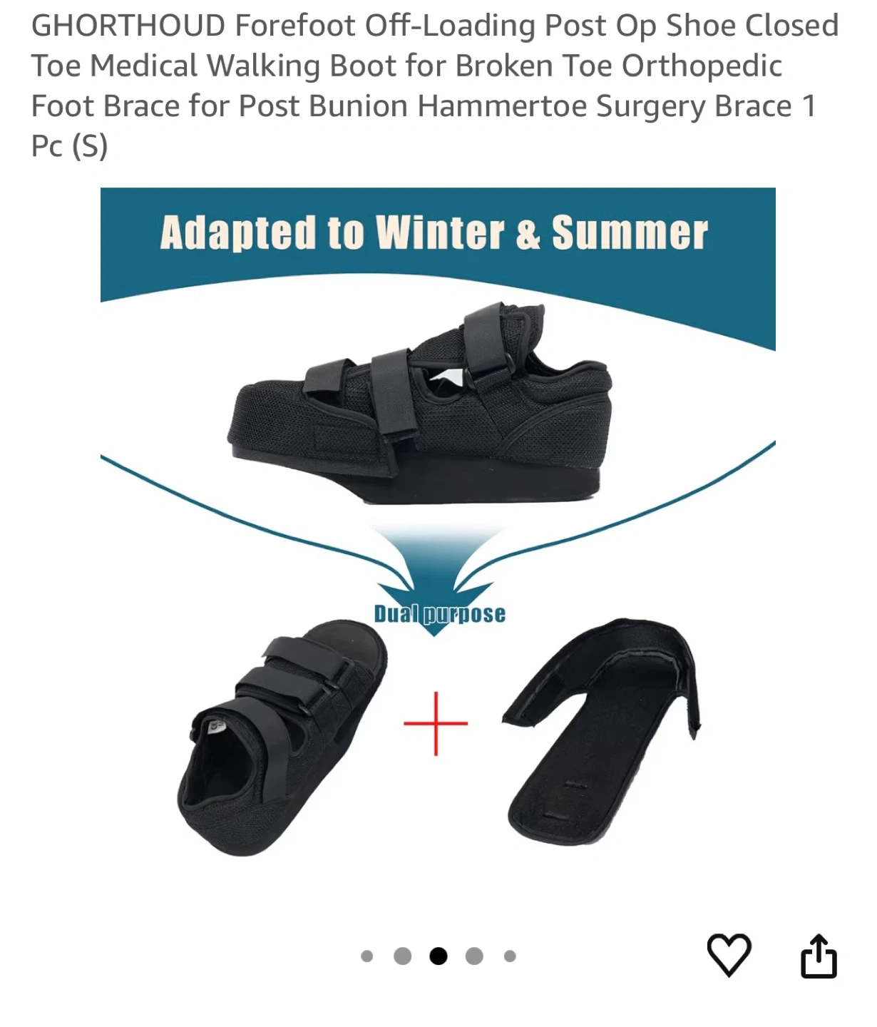 Selling a GHORTHOUD Forefoot Off-Loading Post Op Shoe in size S. It's a closed-toe medical walking boot designed for broken toes and orthopedic foot support. This brace is ideal for post-bunion or hammertoe surgery. It is black and in great condition