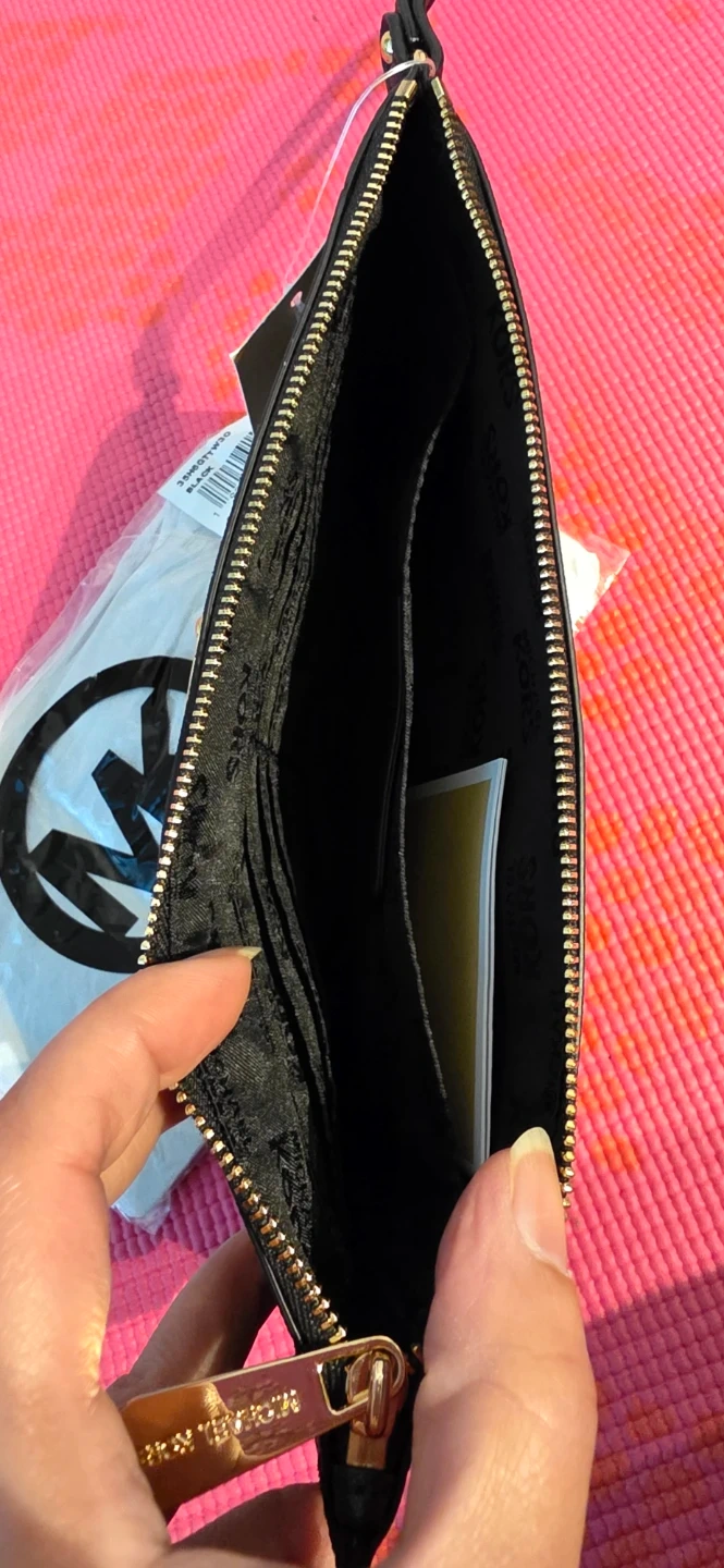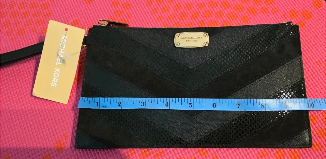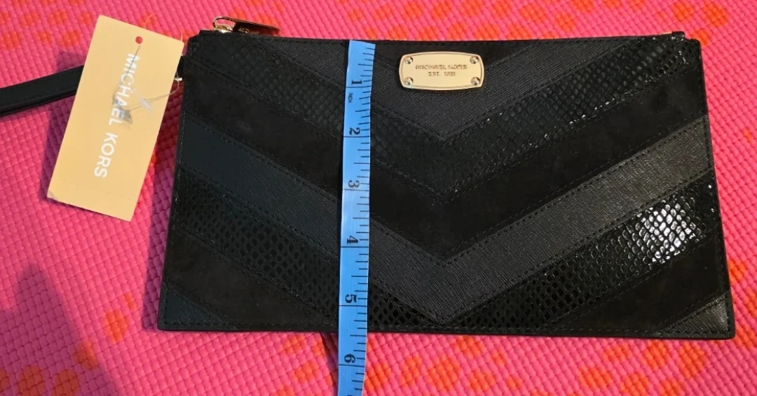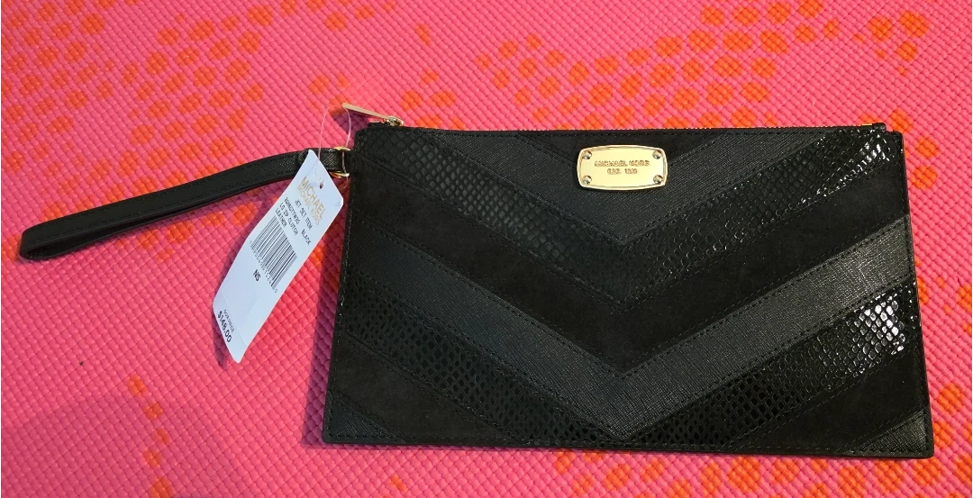 Brand new with tag, stylish black clutch leather wristlet from Michael Kors. It's crafted with a chevron pattern featuring mixed textures. Includes interior pockets for organization. Measurements in pictures.