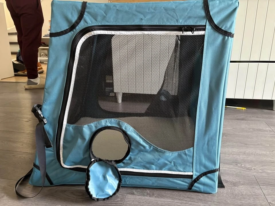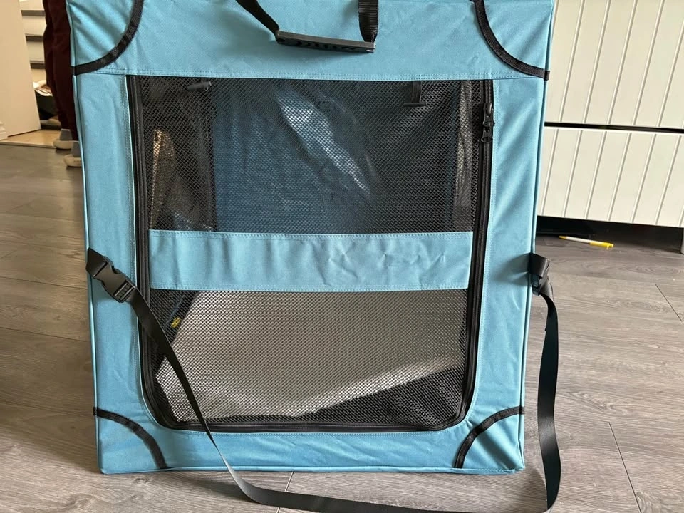 It's new. I got it for my shih tzu or our french bulldog, but it was a bit too big. It's definitely for mid-size to big dogs. Original price was $190 including tax and delivery. Cash and pickup only.