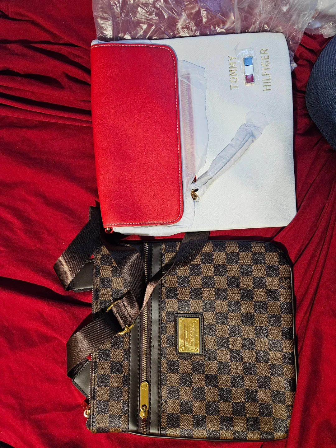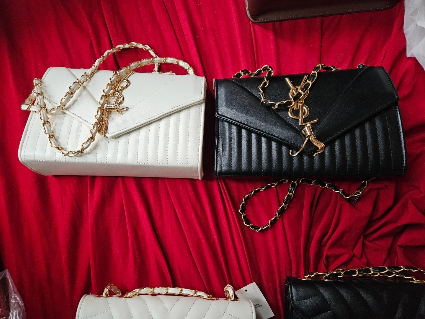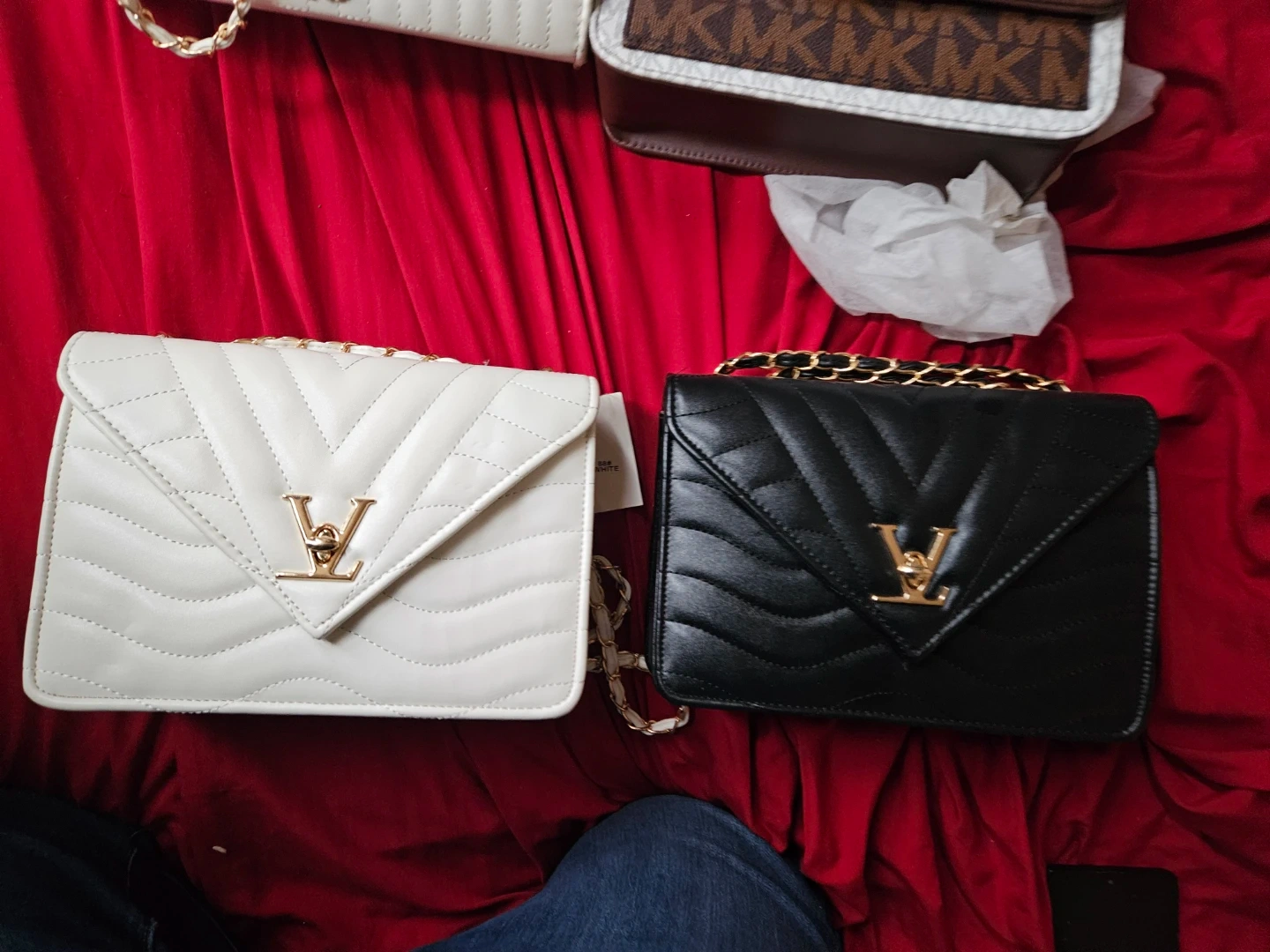 A collection of Michael Kors handbags in various styles and colours. Includes tote bags and crossbody styles. Some bags feature the signature MK pattern with gold-tone hardware.