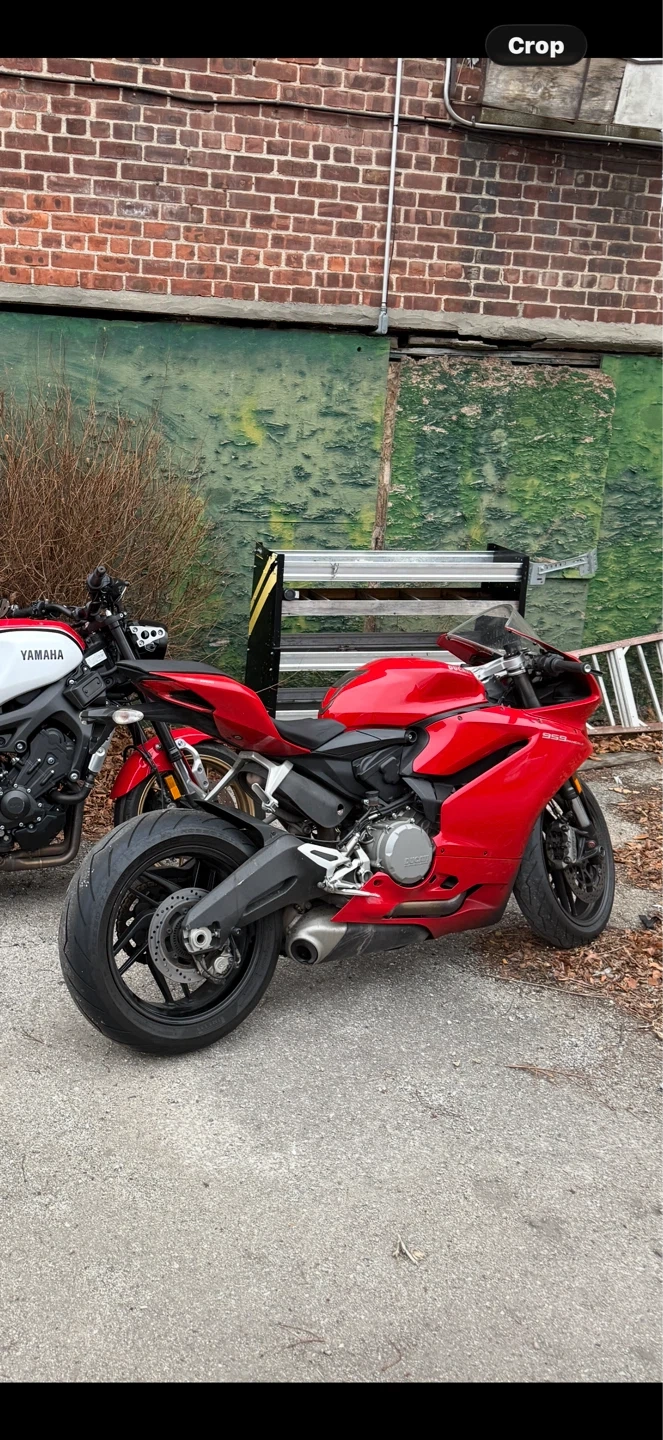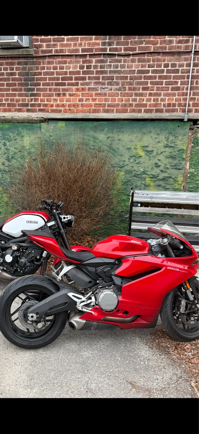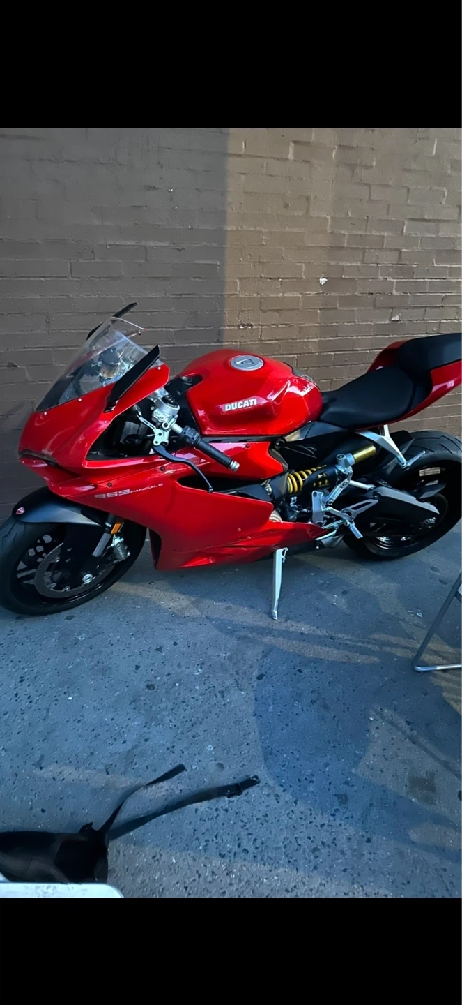 This is a red Ducati sportbike. It's a powerful and stylish motorcycle. Features a sleek design and performance-oriented build.