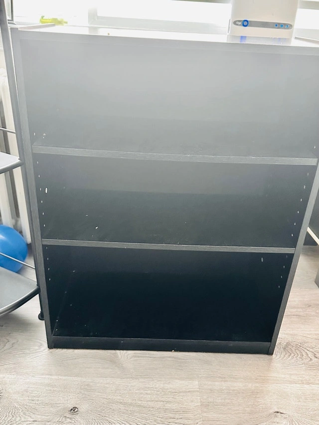 This 3-tier bookcase offers versatile storage with its floor-standing open bookshelf design, perfect for any room; it's in good condition. Whether you're displaying books, plants, or collectables, this bookshelf has ample space to meet your needs. Specifications: Three open shelves, sturdy construction, black finish. Asking $50. If you're seeing this ad, the bookcase is still available!