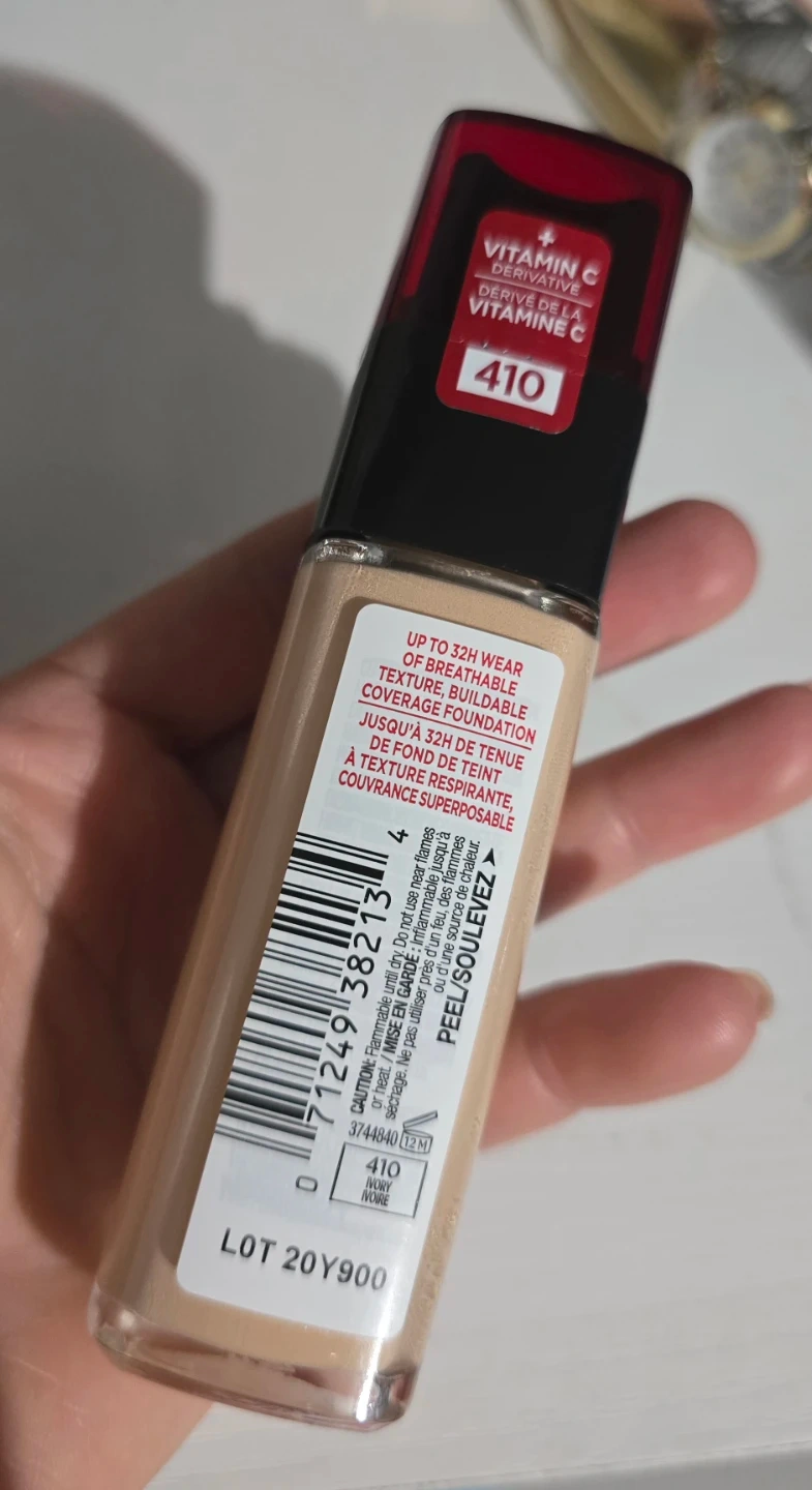 L'Oréal Paris Infallible Fresh Wear foundation provides up to 32 hours of breathable, buildable coverage. It's a lightweight liquid foundation with a natural matte finish. Comes in shade 410 Ivory Beige. I bought it this week and I only use once because it wasnt my correct color.