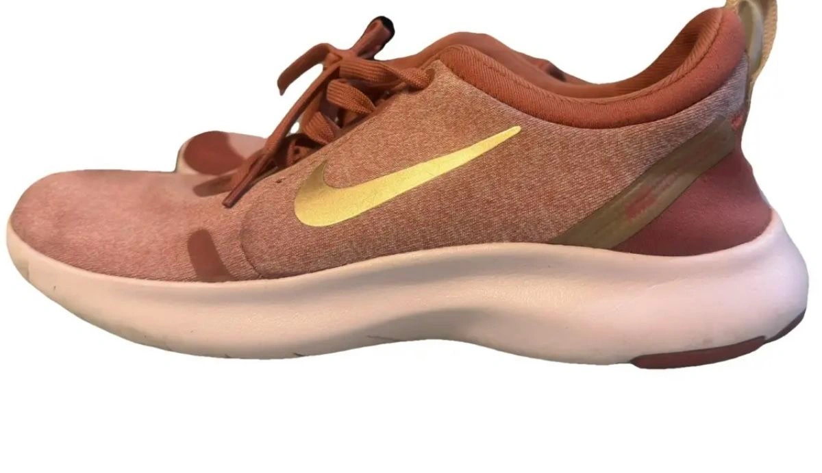 Comfortable and lightweight Nike Flex sneakers in a soft pink/rose tone with a subtle Nike swoosh detail. Designed with a flexible sole and breathable upper, making them great for everyday wear, walking, travel, or casual athleisure looks.